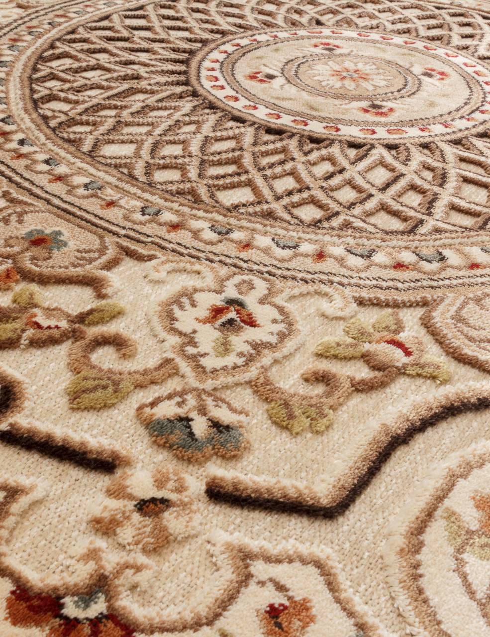 Так что если вам требуется стильное, практичное и функциональное украшение интерьера, стоит обратить внимание на ковер GENOVA 38504 626260 Круг V из коллекции Genova. Страна компании-производителя - Бельгия, и это означает проверенное качество и модный актуальный дизайн, в котором гармонично сочетаются форма (круглый) и рисунок (классический) коврового изделия.