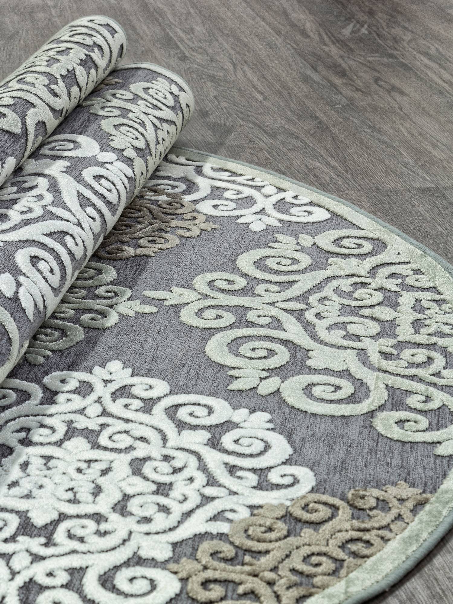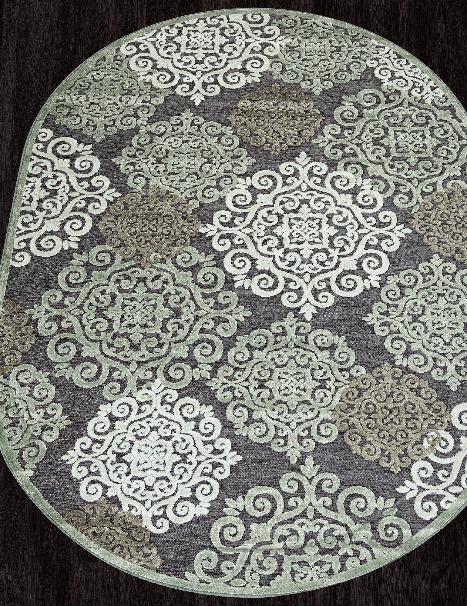 Стильный овальный ковер из вискозы в интересном дизайне. Этот ковер хорошо подойдет под интерьер в современном стиле.