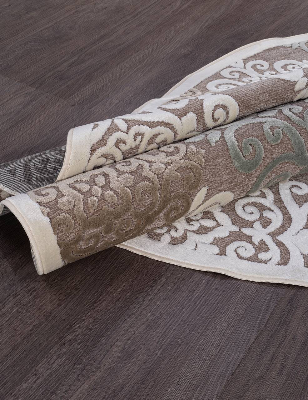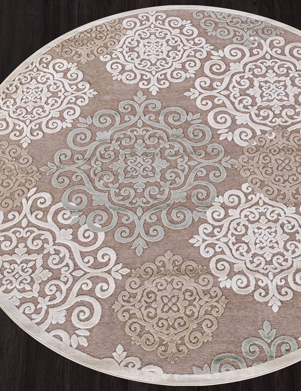 Оригинальный круглый ковер с классической расцветкой и орнаментом. Интересное решение для украшения гостиной или зала.