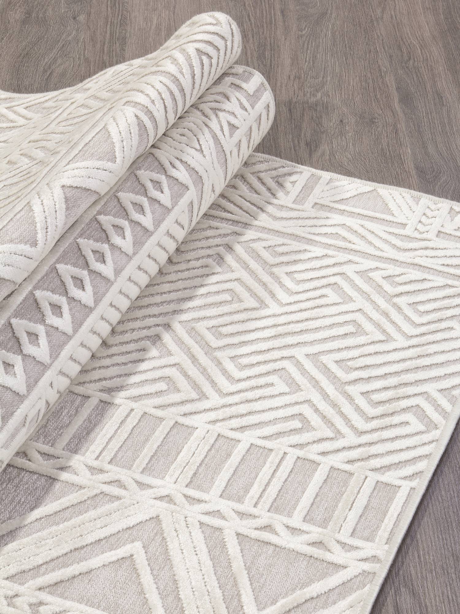 Геометрический орнамент, серо-кремовая расцветка и высокое качество изготовления. Это ковровое изделие будет отличным дополнением интерьера гостиной или зала.