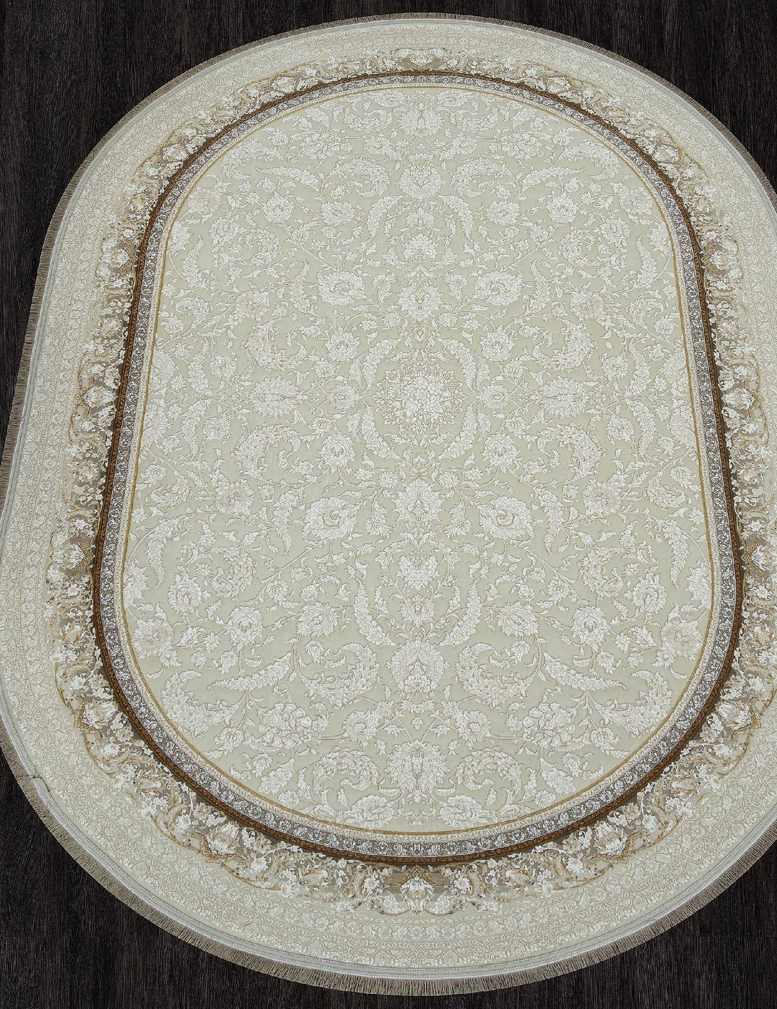 Красивый и оригинальный ковер из акрила. Модная овальная форма и спокойная расцветка позволяют этому ковру стать хорошим дополнением для интерьера вашего дома.