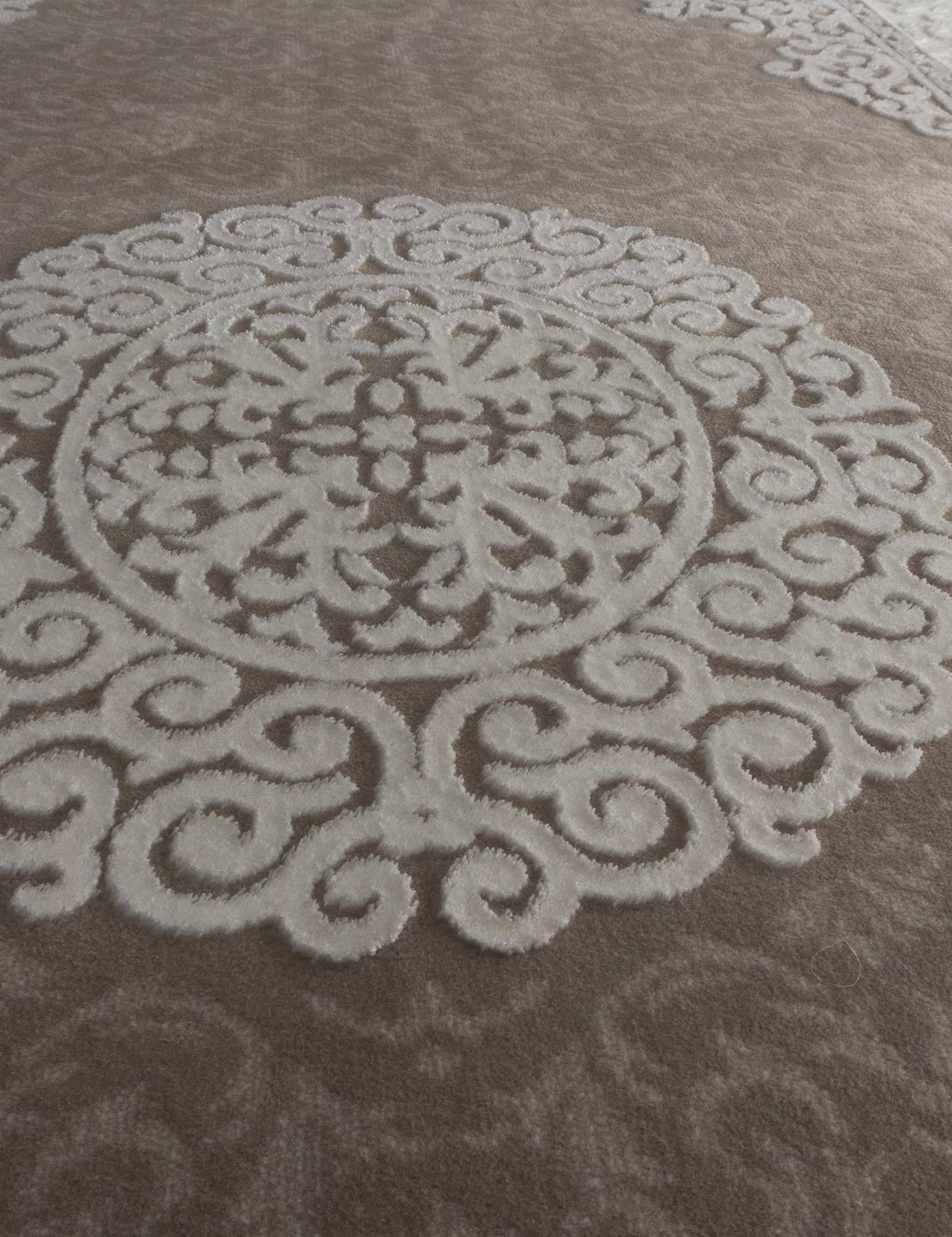 Благородный ковер в классическом дизайне, отличная расцветка и рельефный абстрактный рисунок. Все это позволяет этому ковру стать отличным украшением для почти любого современного интерьера.