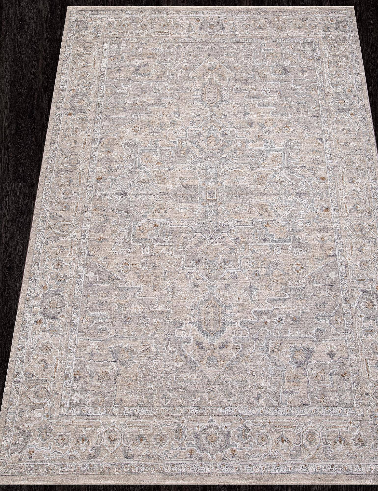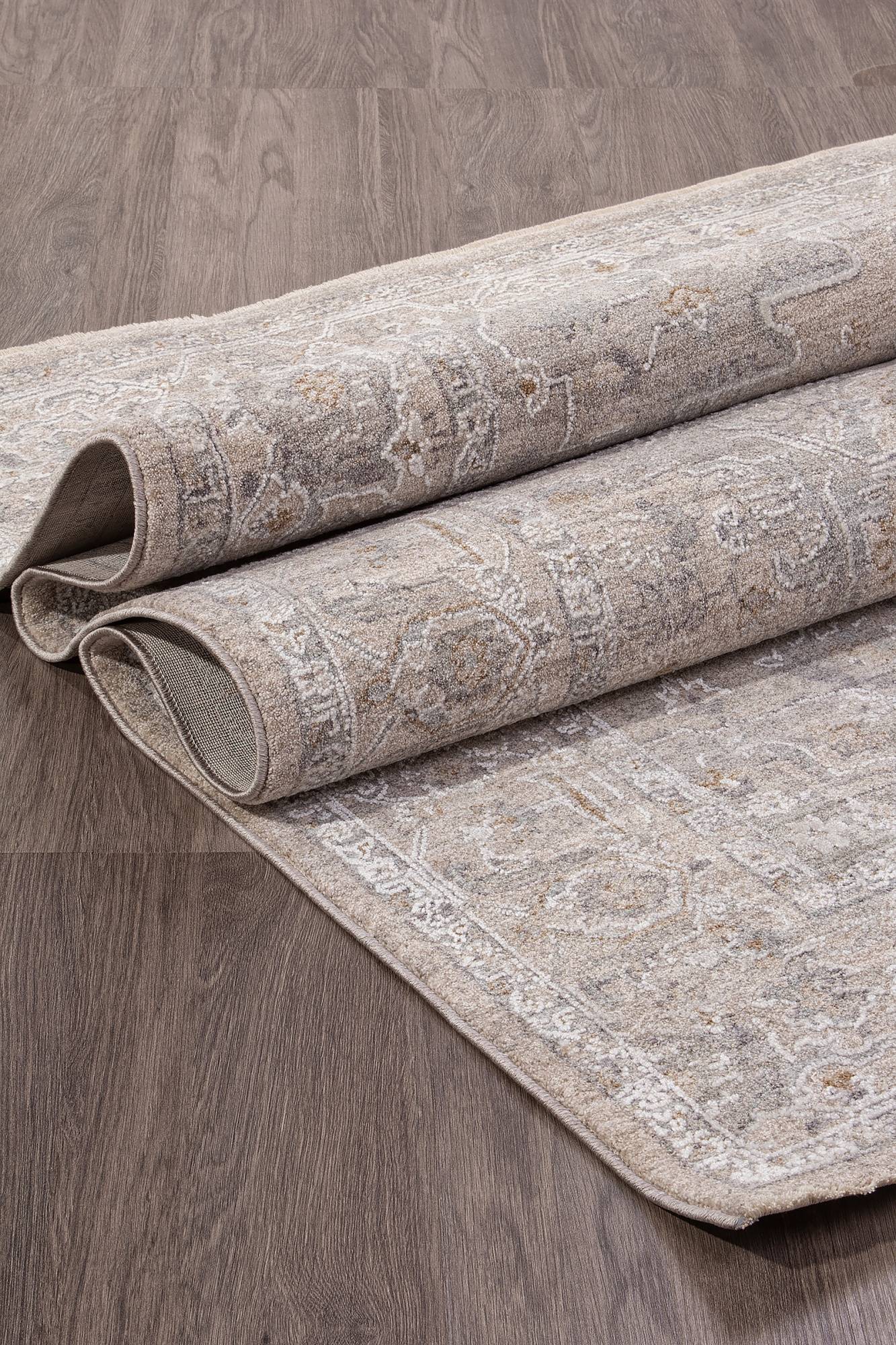 Светлый ковер в нейтральной серо-бежевой расцветке с детализированным орнаментом. Этот ковер станет хорошим дополнением к интерьеру вашего дома.
