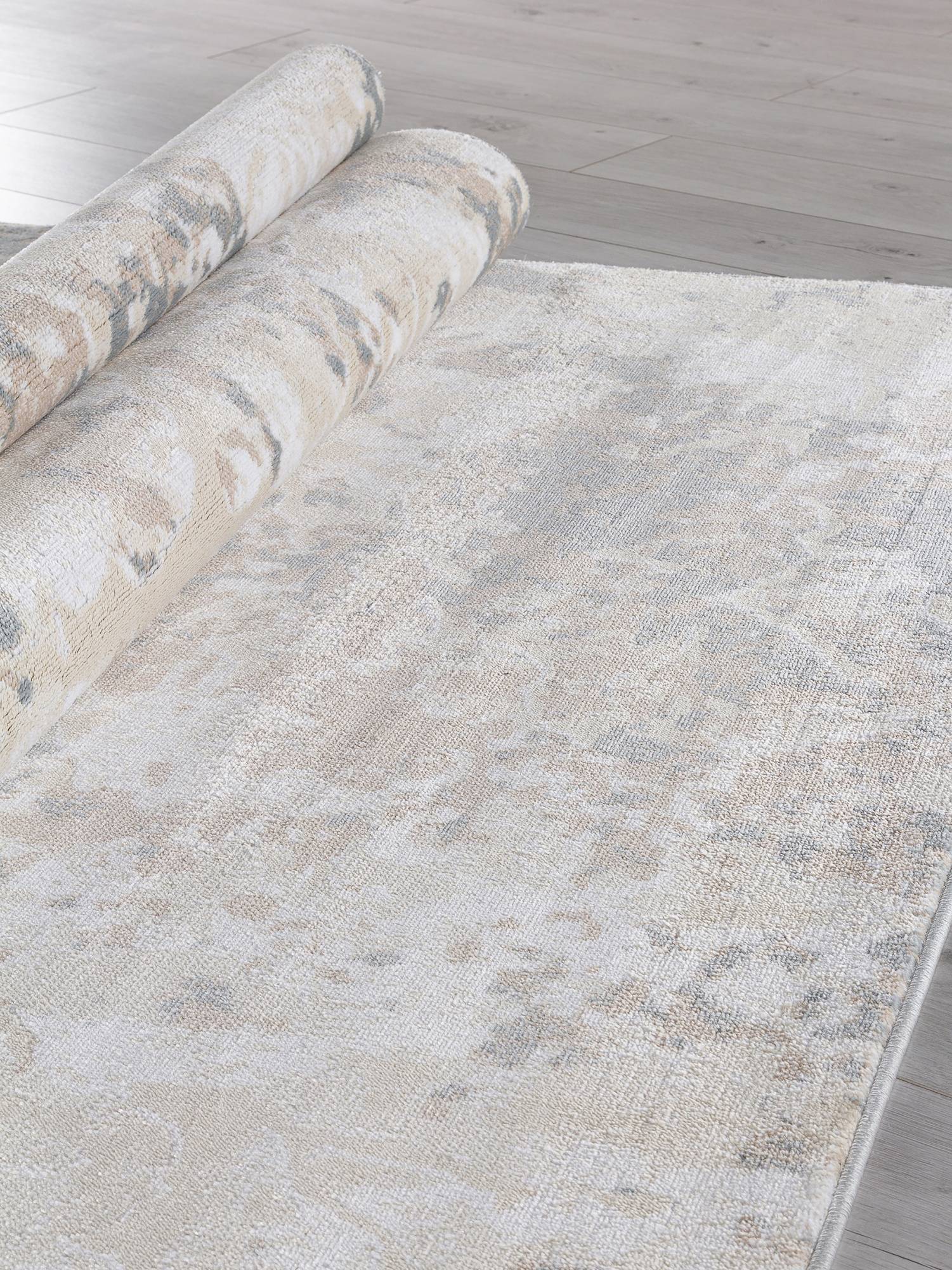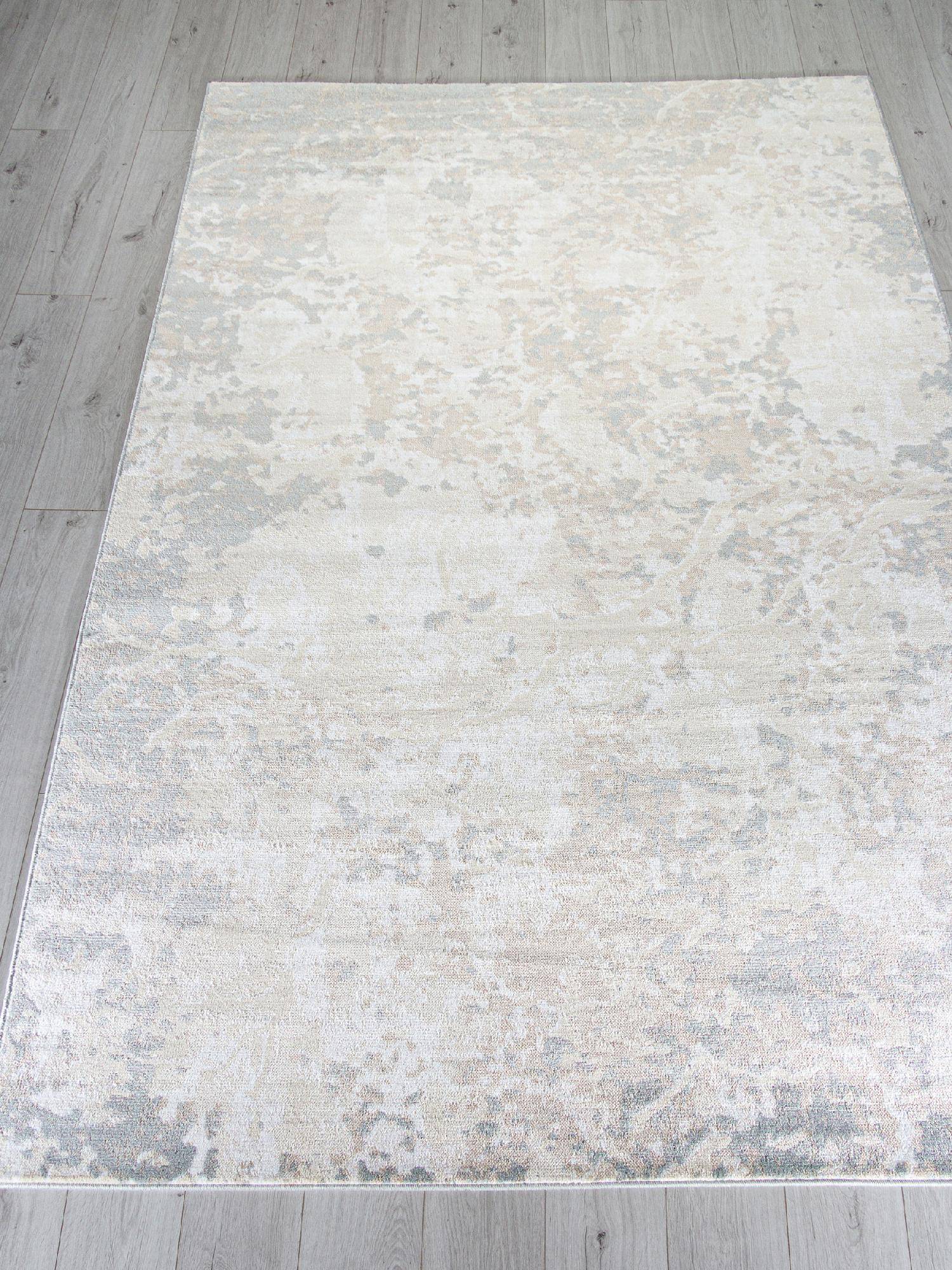 Красивый и светлый ковер с интересным, абстрактным ковром. Такое ковровое изделие будет интересным украшением для интерьера вашего дома.