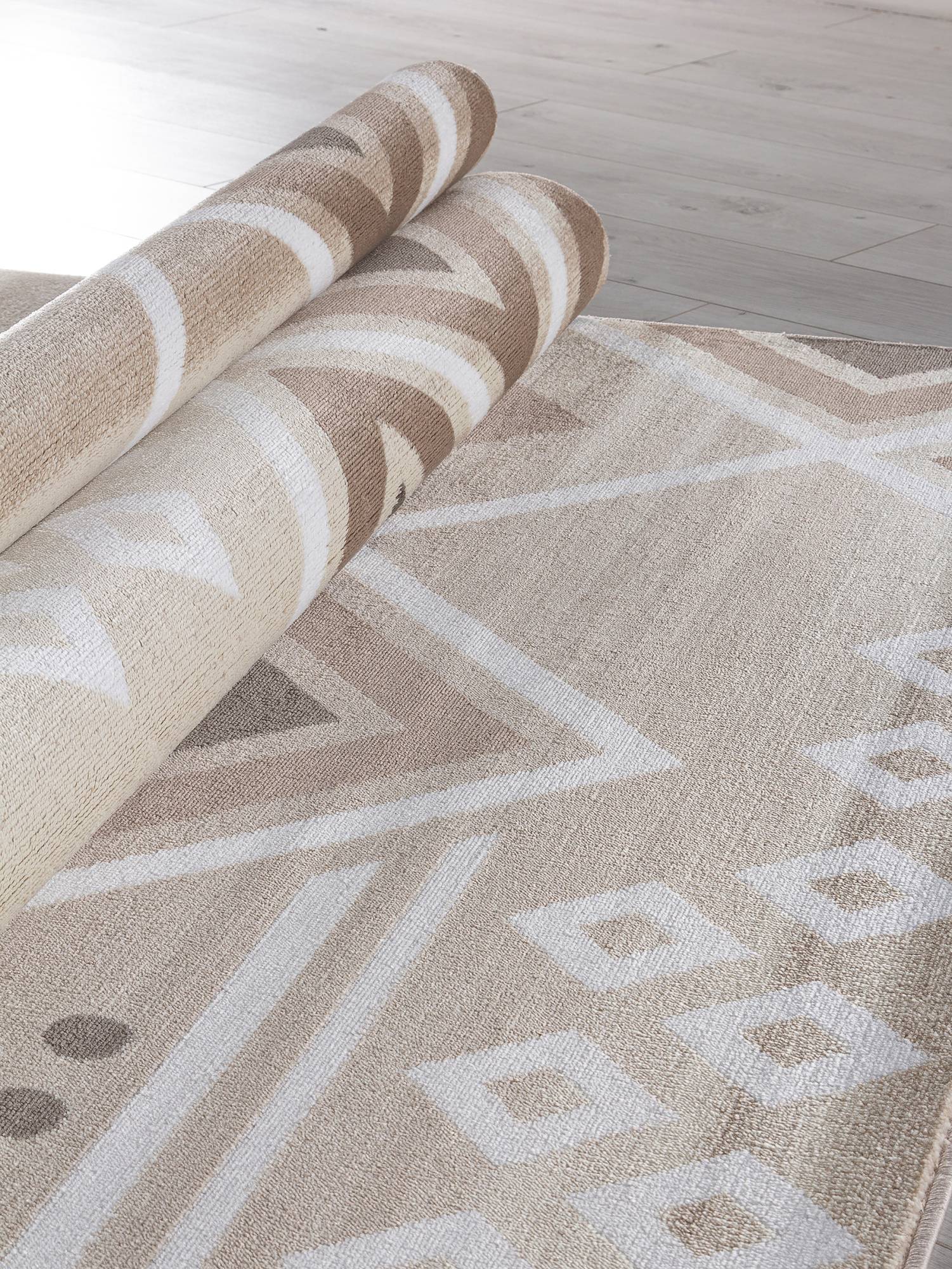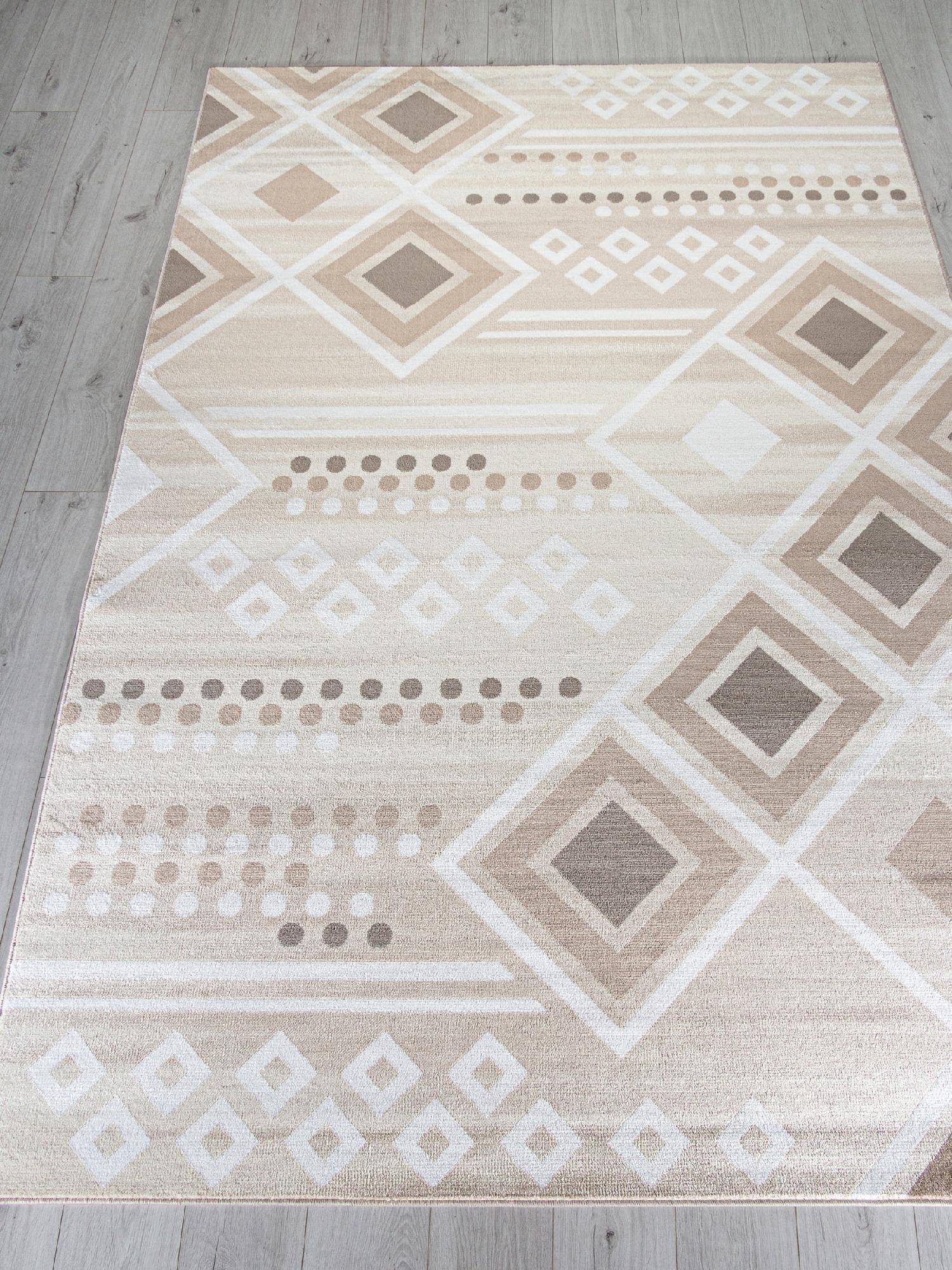 Оригинальный рисунок с геометрическими элементами позволяет этому ковру стать хорошим дополнением для интерьера вашего дома.
