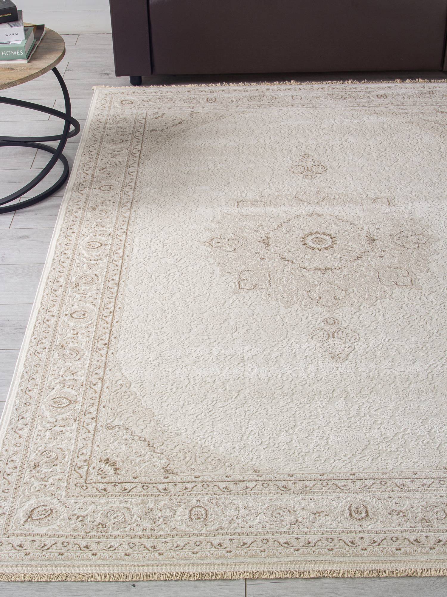 Красивый, рельефный рисунок, приятная расцветка в кремово-бежевом тоне и стильный классический дизайн позволяют этому ковру стать стильным дополнением к любому современному интерьеру.