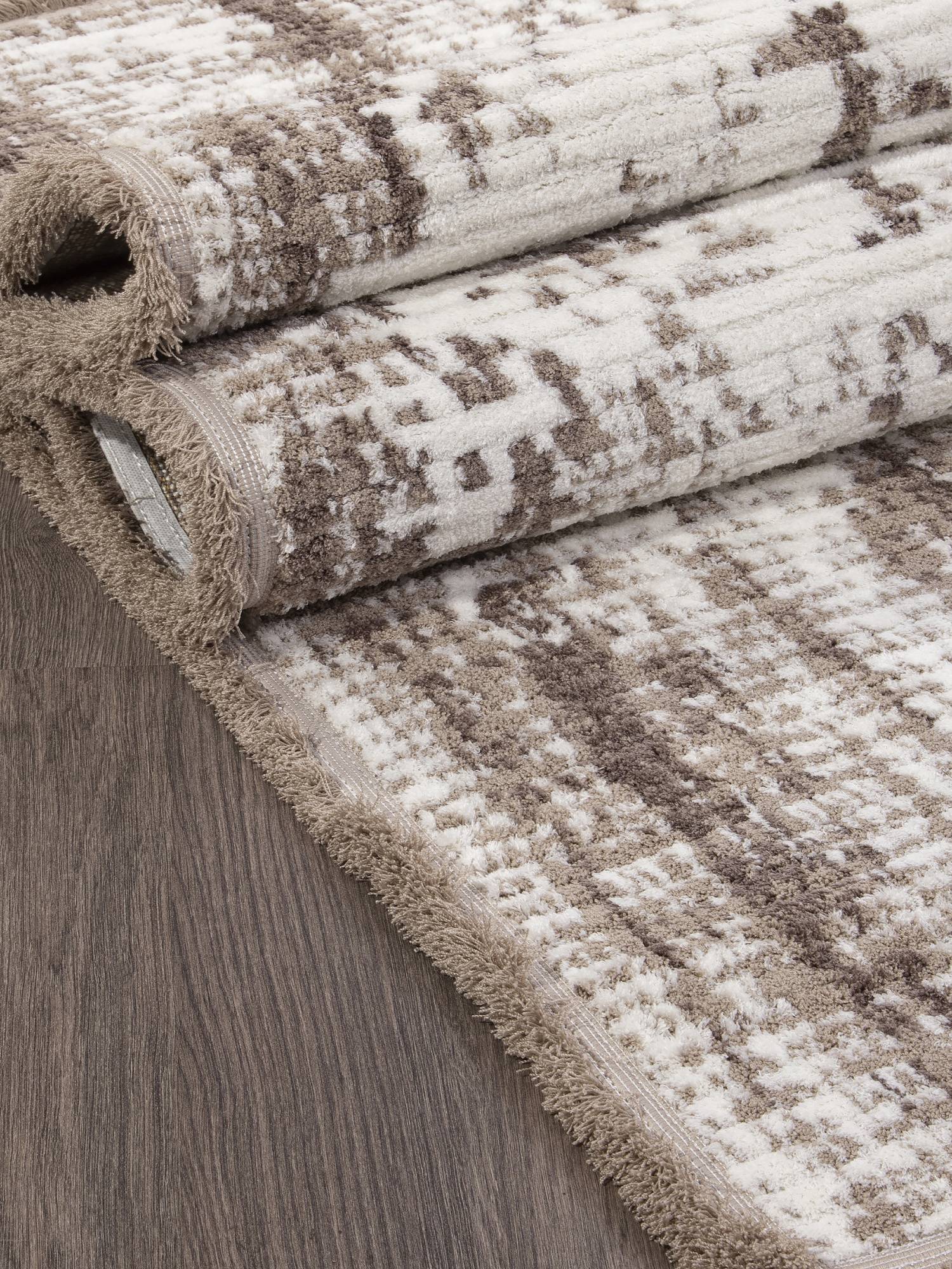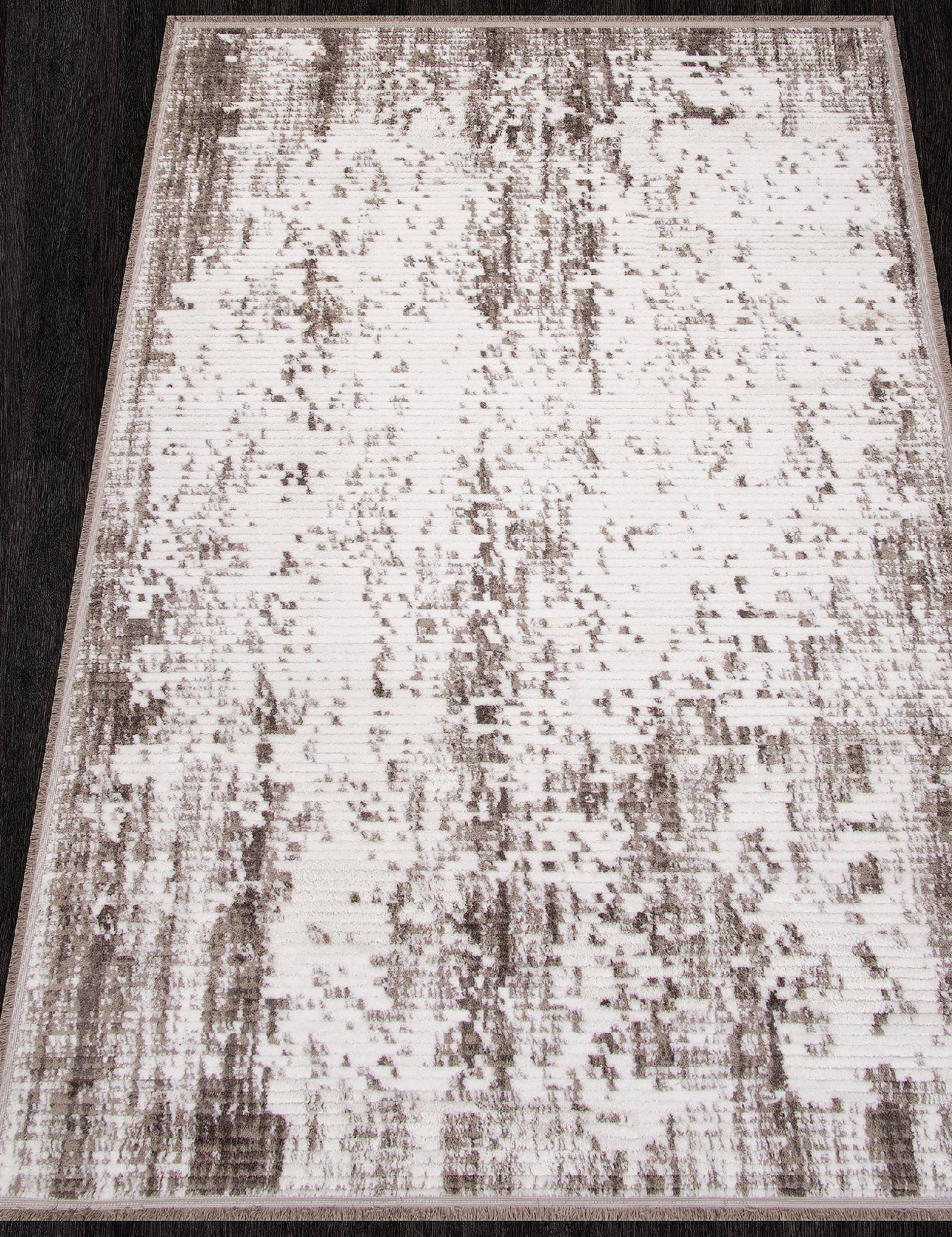 Абстрактный рисунок в интересной расцветке в белых и серых тонах, а также высокое качество изготовления позволяют этому ковру стать хорошим дополнением к интерьеру зала или гостиной.