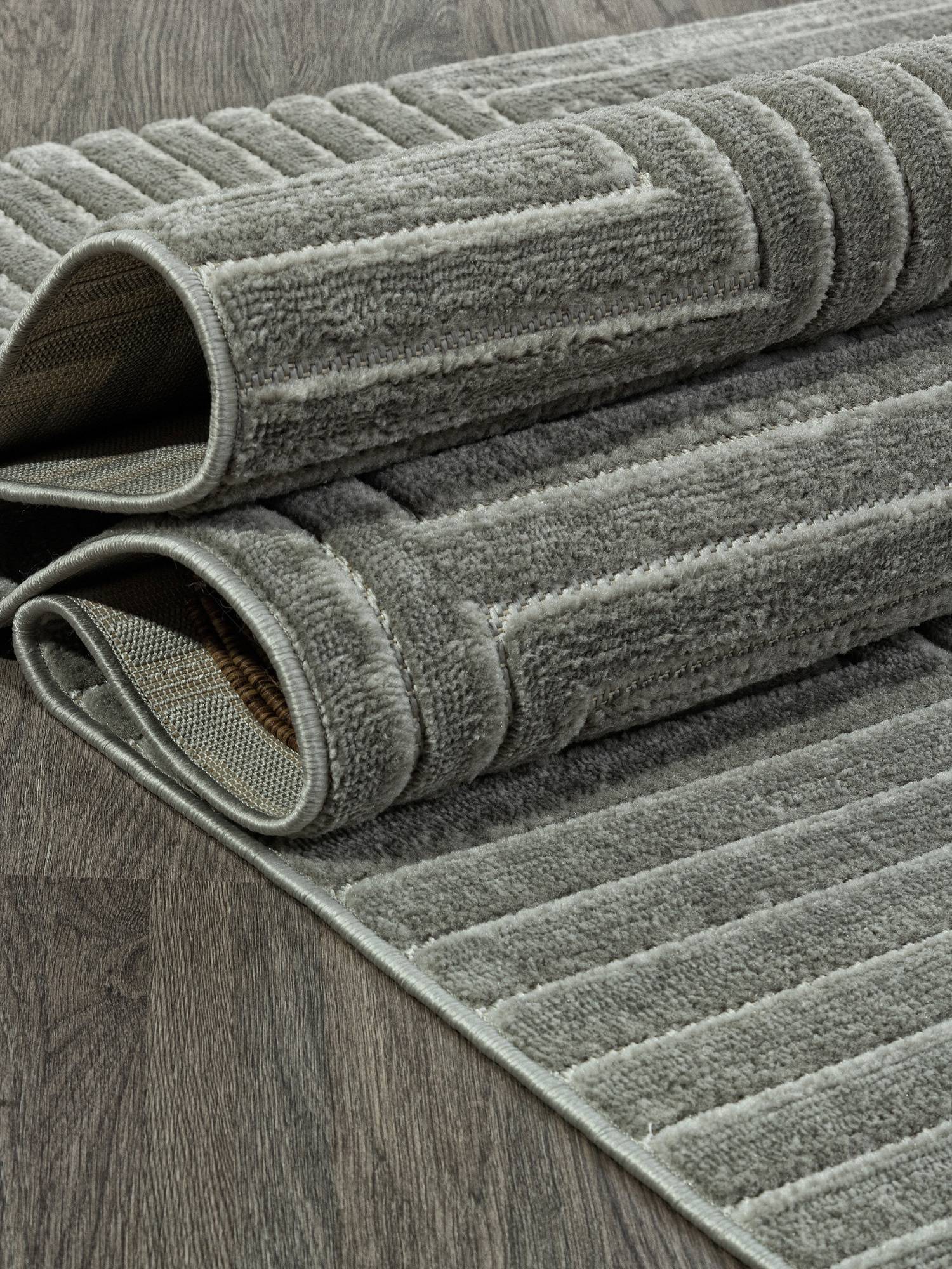 Так что если вы ищете модное, практичное и функциональное украшение интерьера, стоит обратить внимание на ковер JUNO D786AG GREY / GREY из коллекции JUNO. Страна производства - Турция, и это означает прекрасное качество изготовления и модный актуальный дизайн, в котором гармонично сочетаются форма (прямоугольный) и рисунок (современный) коврового изделия.