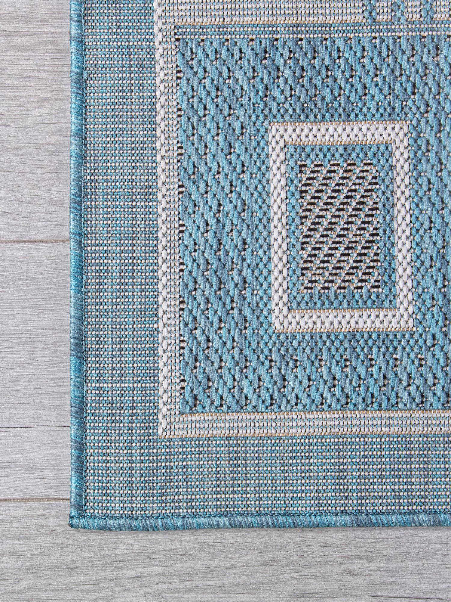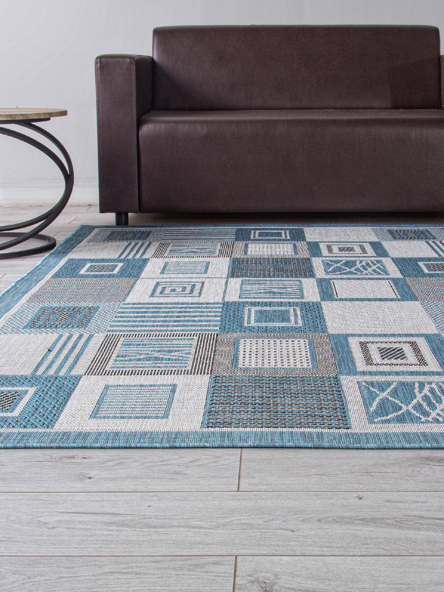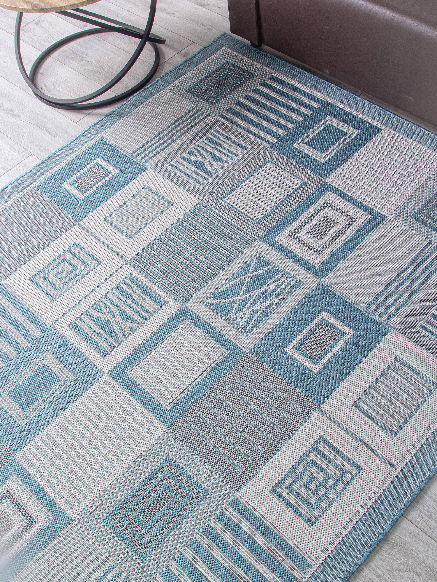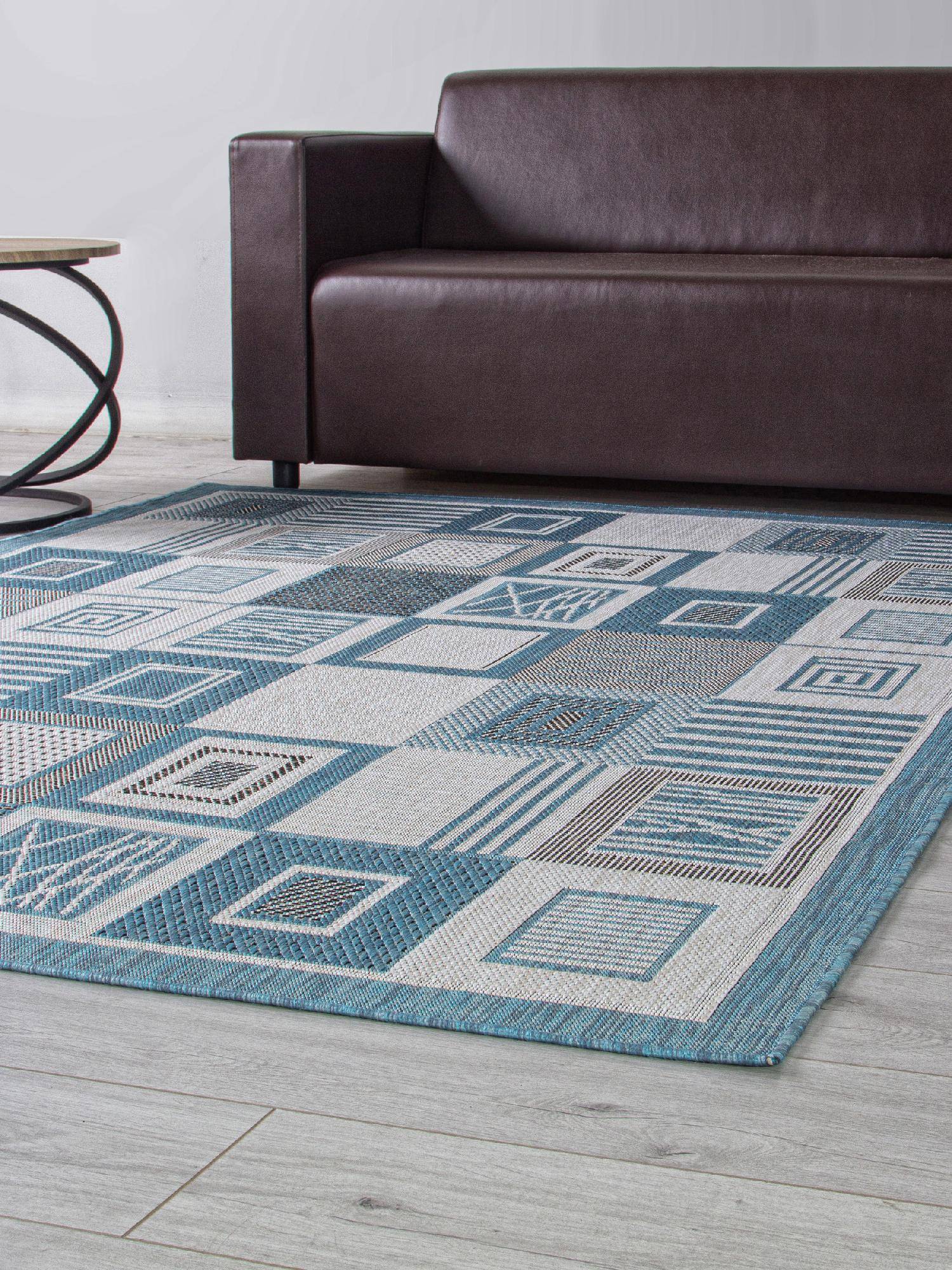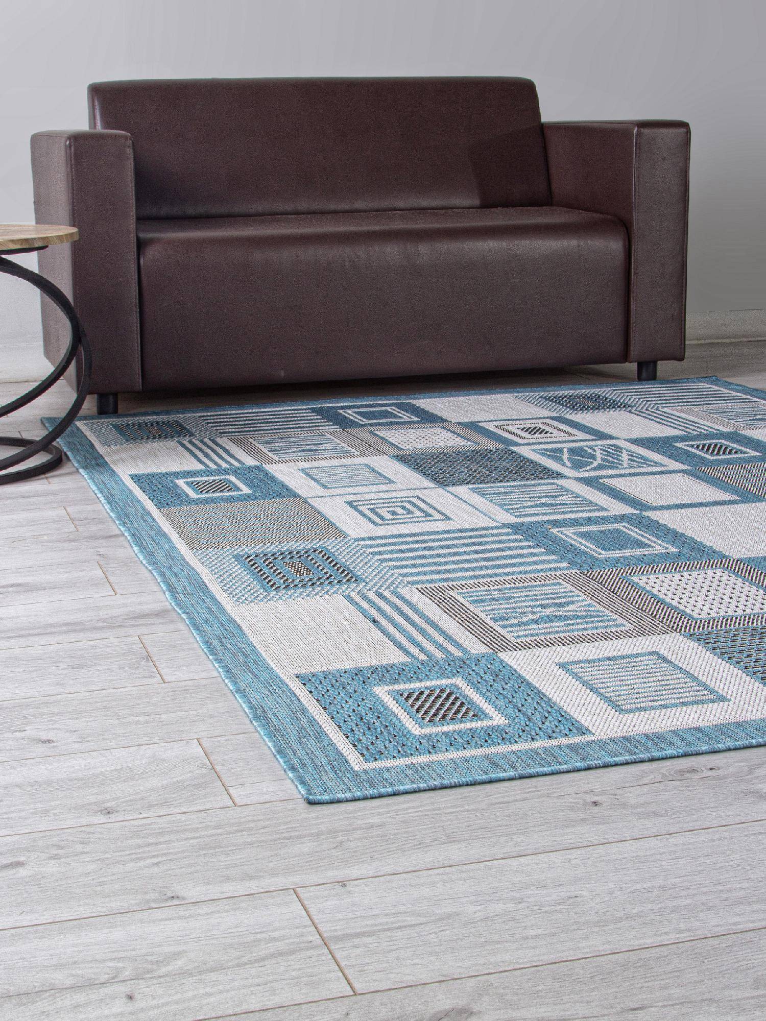 Геометрический орнамент, приятная серо-синяя расцветка и высокое качество изготовления. Этот ковер будет хорошо смотреться как в зале, так и в кухне.