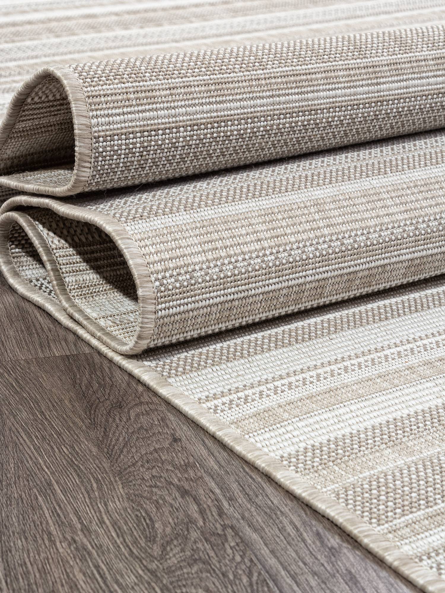 Светлая циновка с интересным рисунком станет хорошим дополнением для интерьера гостиной или зала.