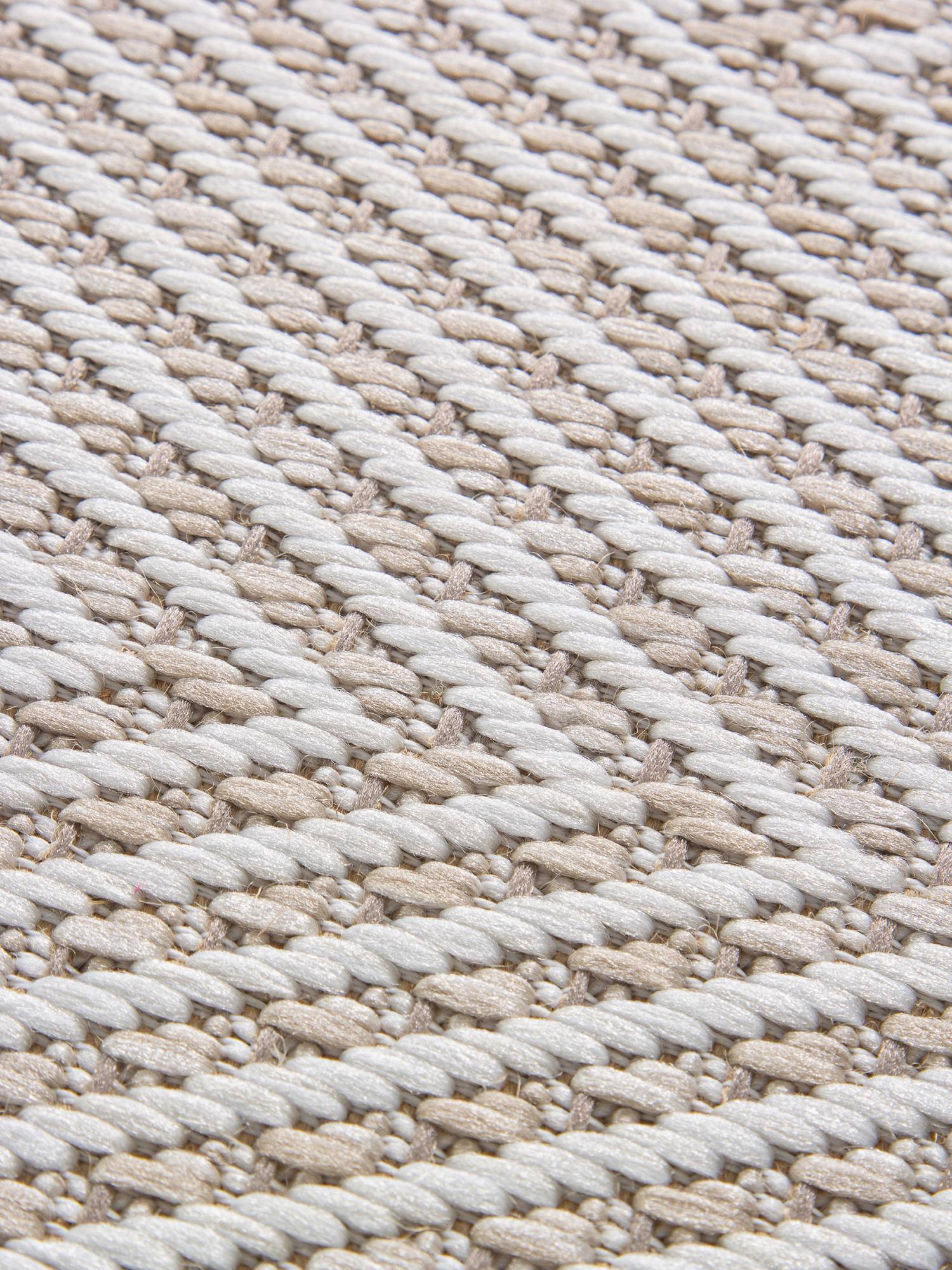 Лаконичный, модный дизайн с геометрическими элементами в рисунке помогает этой светлой циновки вписаться в любой современный интерьер.