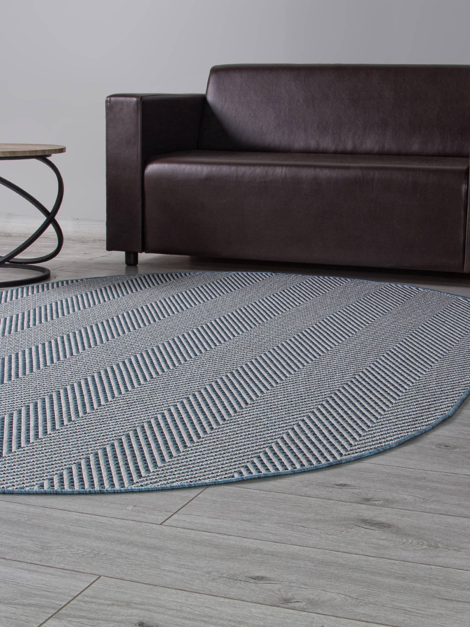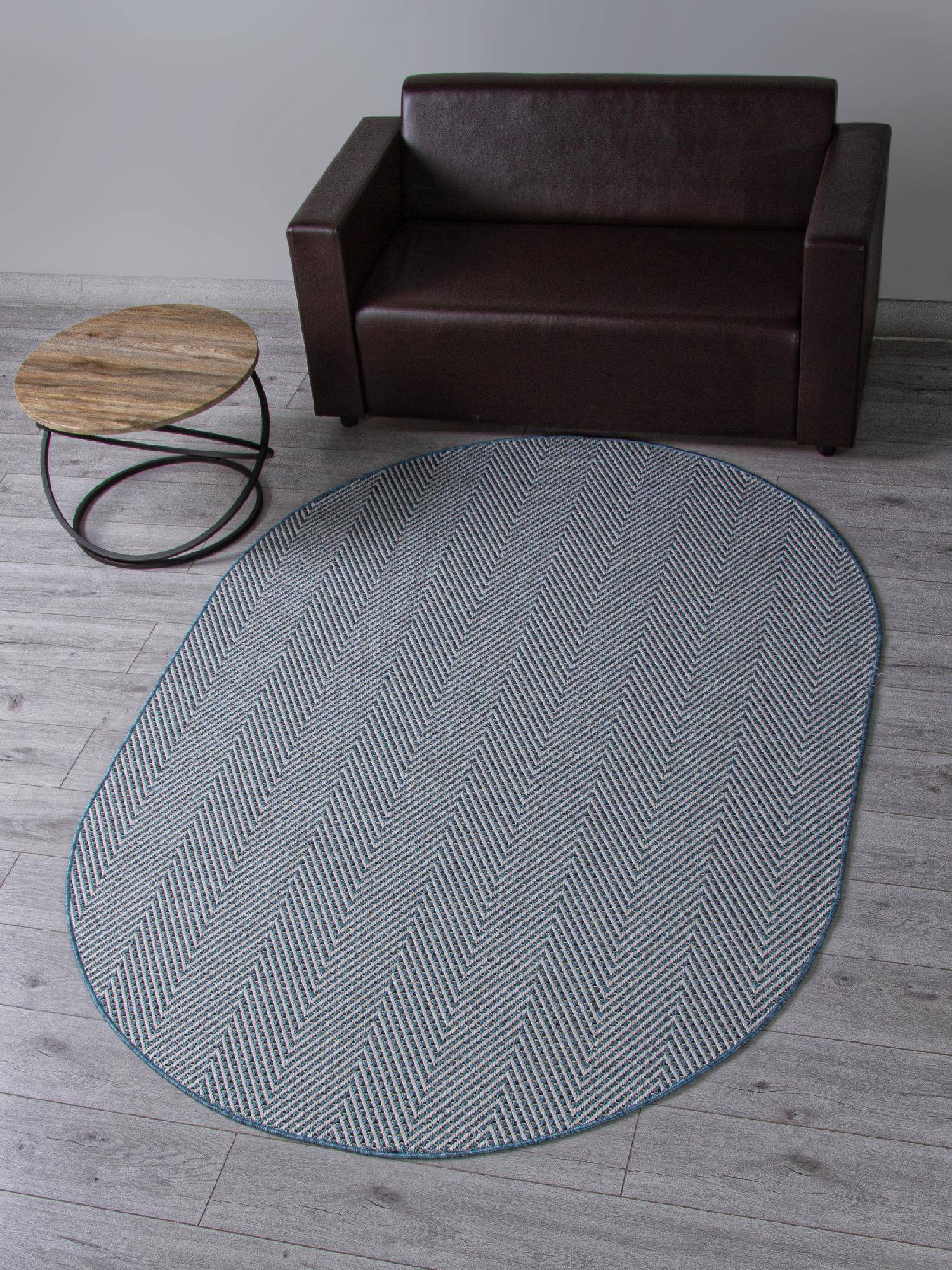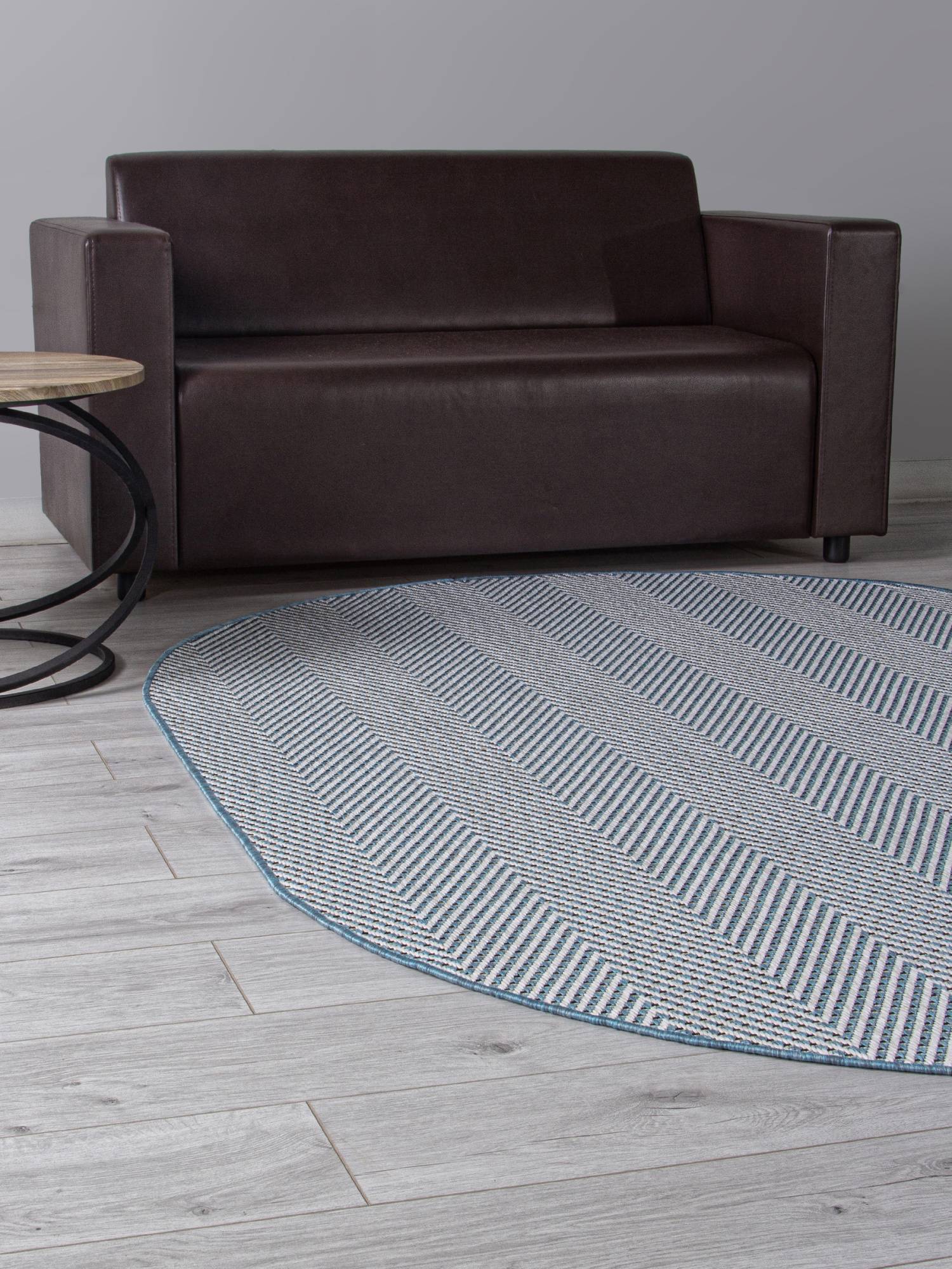 Оригинальный овальный ковер с геометрическим орнаментом и интересной расцветкой. Это ковровое изделие будет стильным дополнением для интерьера вашего дома.