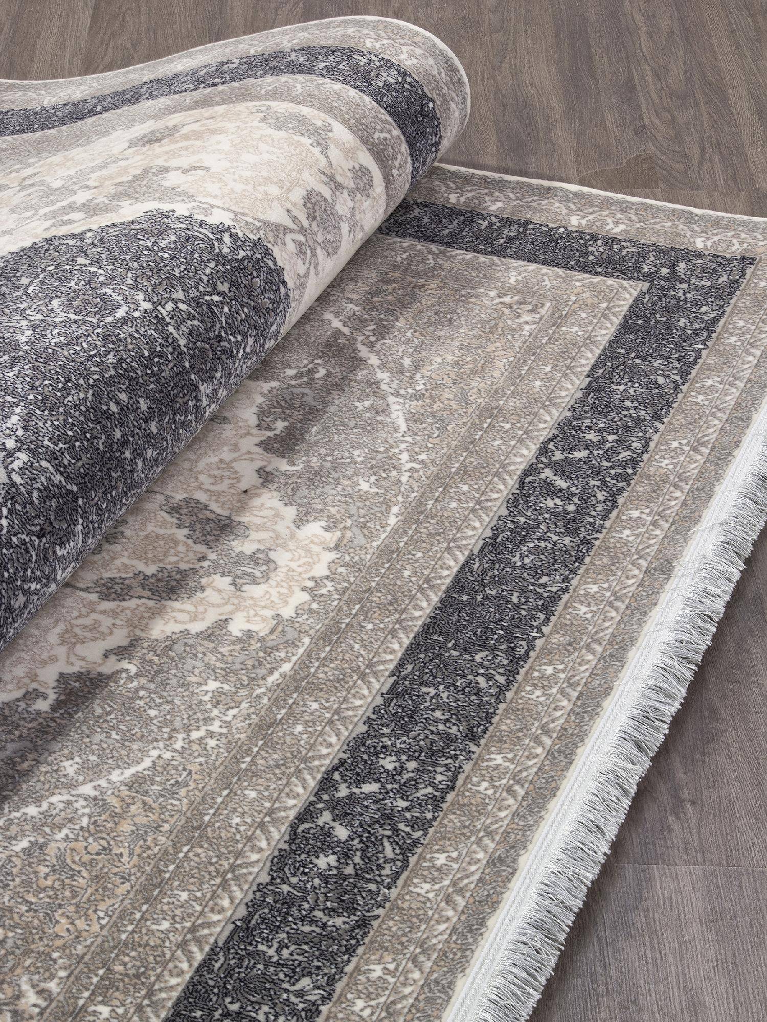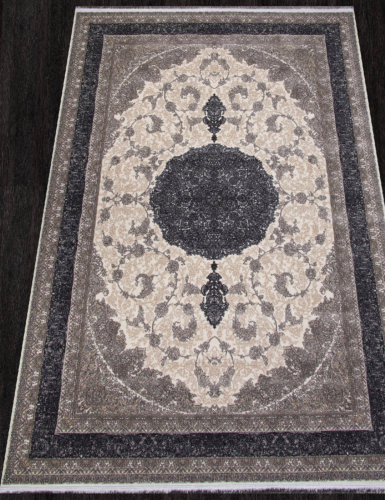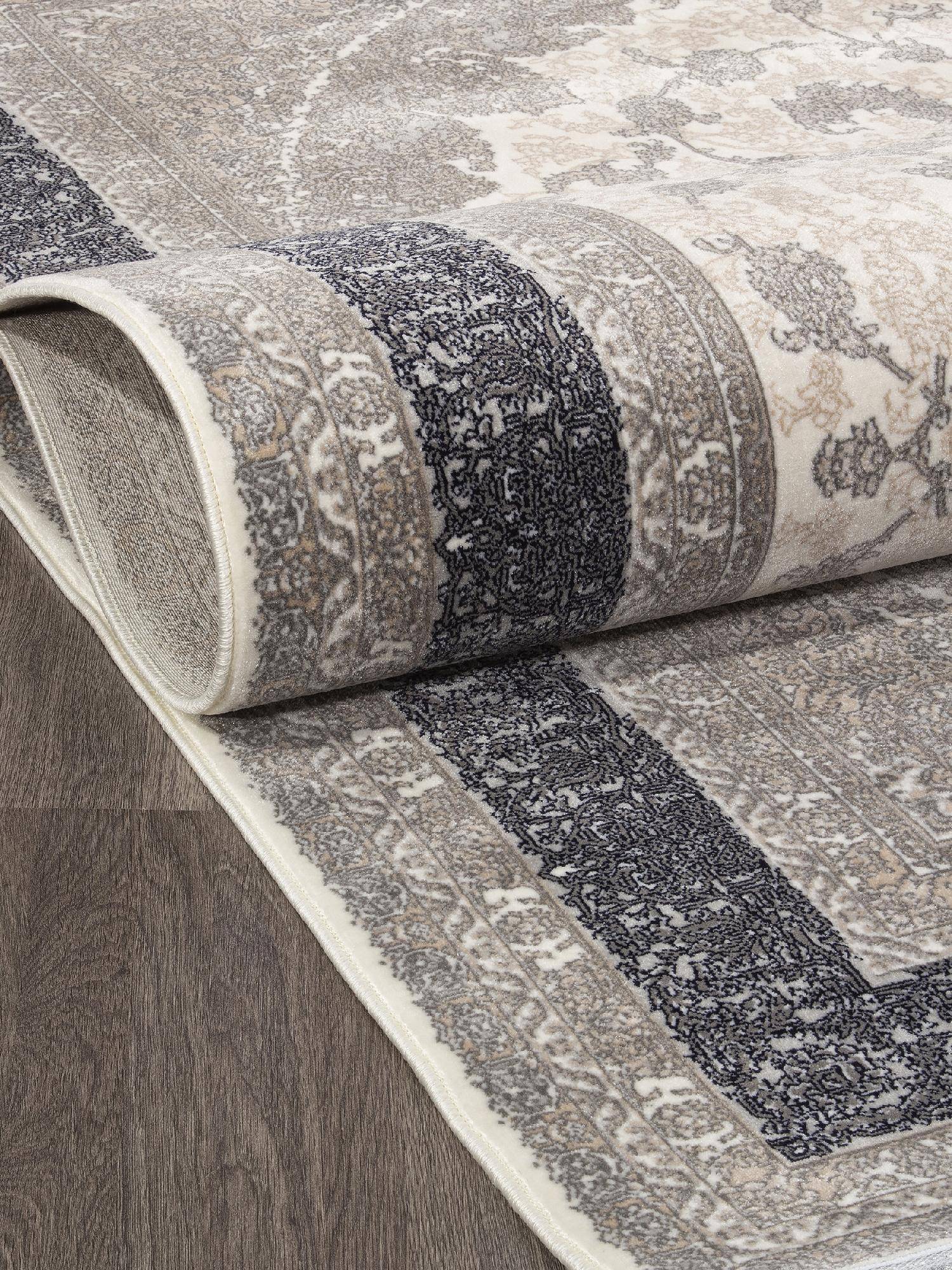 Интересная расцветка из сочетания кремового, серого и бежевого цвета, детализированный орнамент и классический стиль этого ковра позволяют ему стать хорошим украшением для интерьера вашего дома.