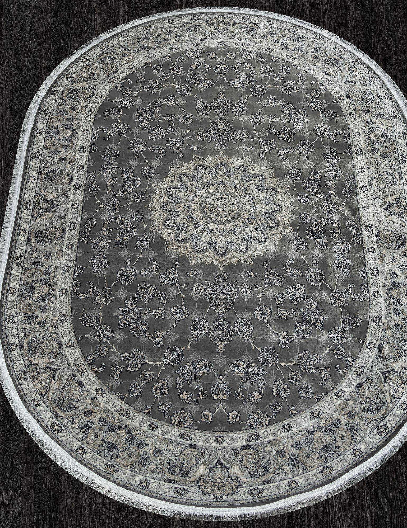 Высококачественный классический ковер в овальной форме. Стильный дизайн и нейтральная расцветка позволяют этому ковру стать интересным украшением для вашего дома.