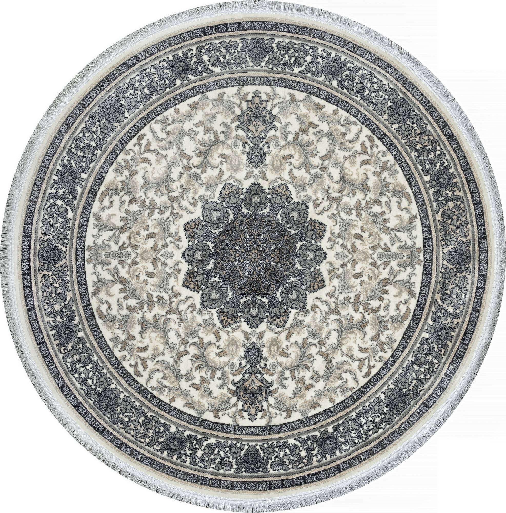 Так что если вам требуется стильное, практичное и функциональное украшение интерьера, стоит выбрать ковер KASHAN 752305 000 Круг из коллекции KASHAN. Страна производства - Иран, и это означает отличное качество изготовления и модный современный дизайн, в котором гармонично сочетаются форма (круглый) и рисунок (классический) коврового изделия.