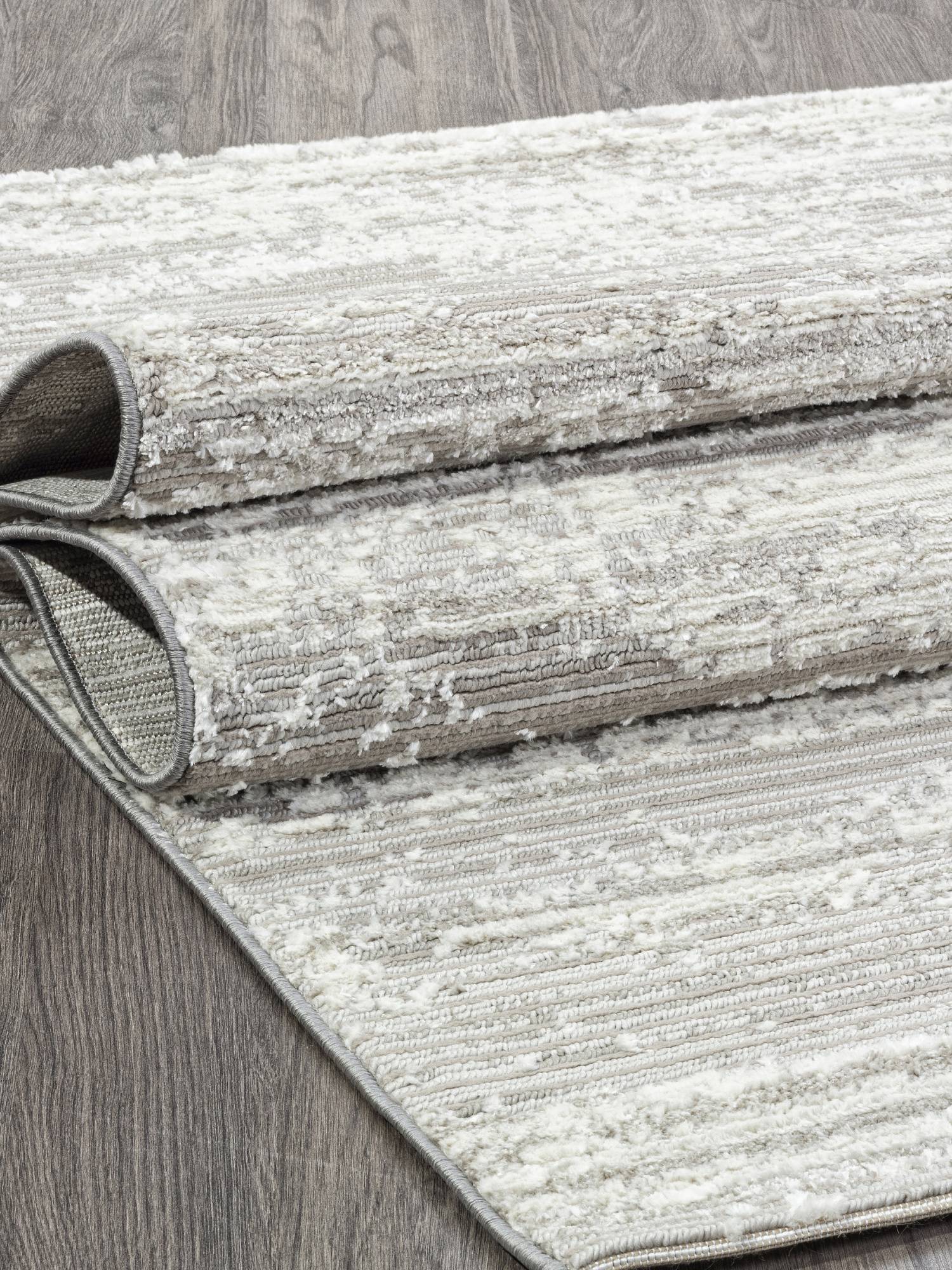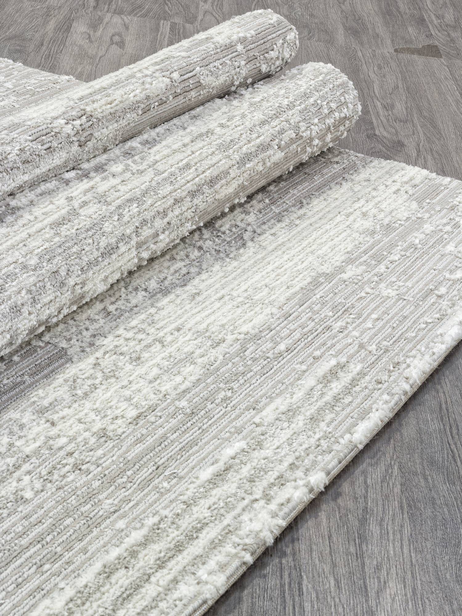 Светлый ковер с абстрактным рисунком будет красивым украшением для интерьера гостиной или зала.