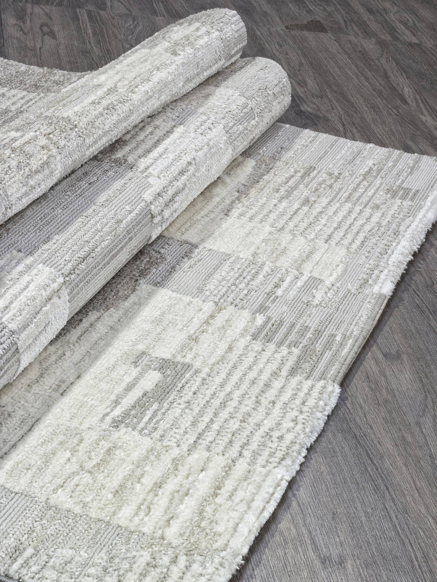 Оригинальный ковер из полиэстера в геометирческим рисунком и коротким ворсом. Отлично подойдет для и...