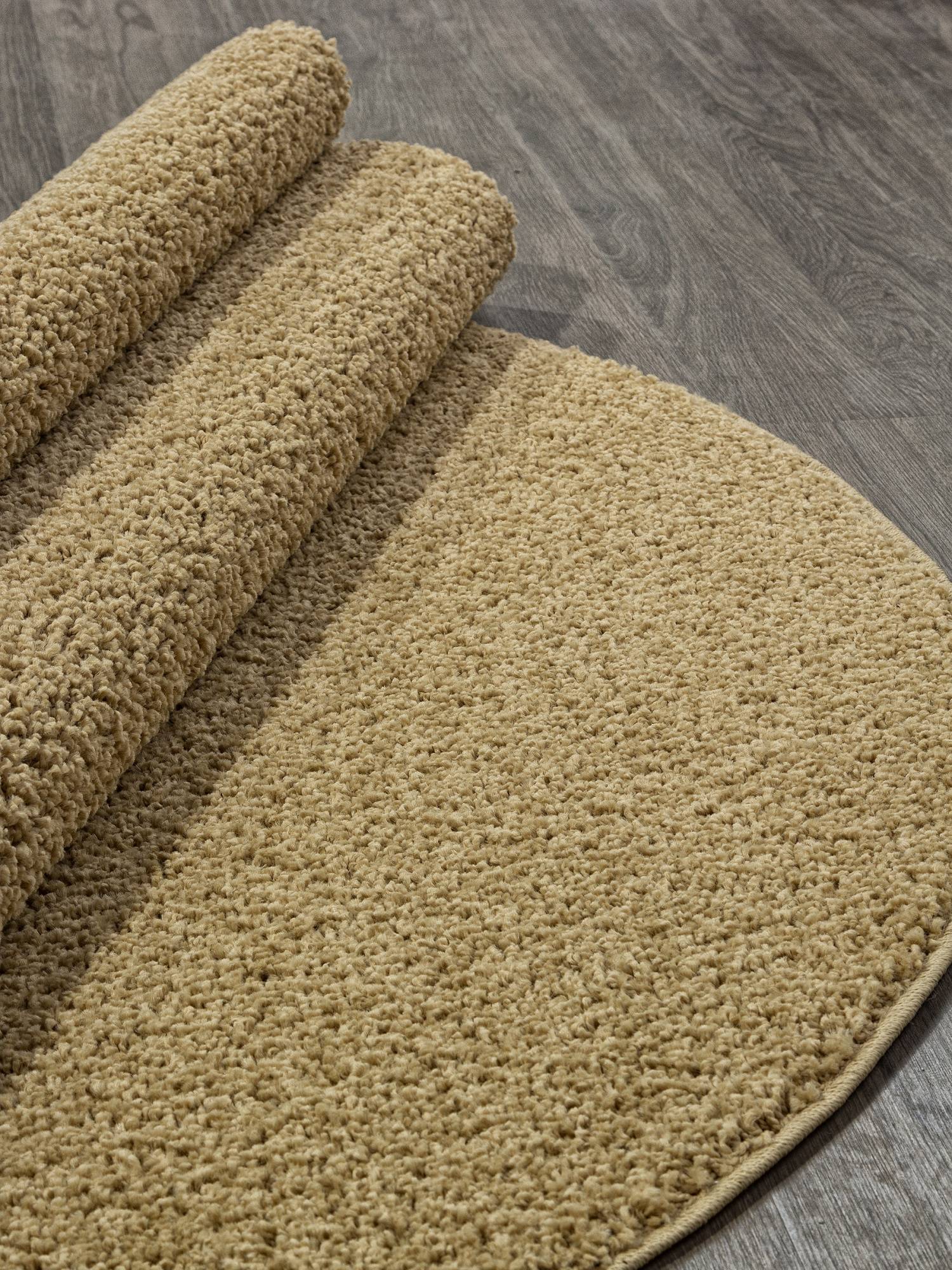 Нейтральная расцветка в бежевом тоне, длинный качественный и мягкий ворс, а также стильная овальная форма позволяют этому ковру украсить любой современный интерьер.