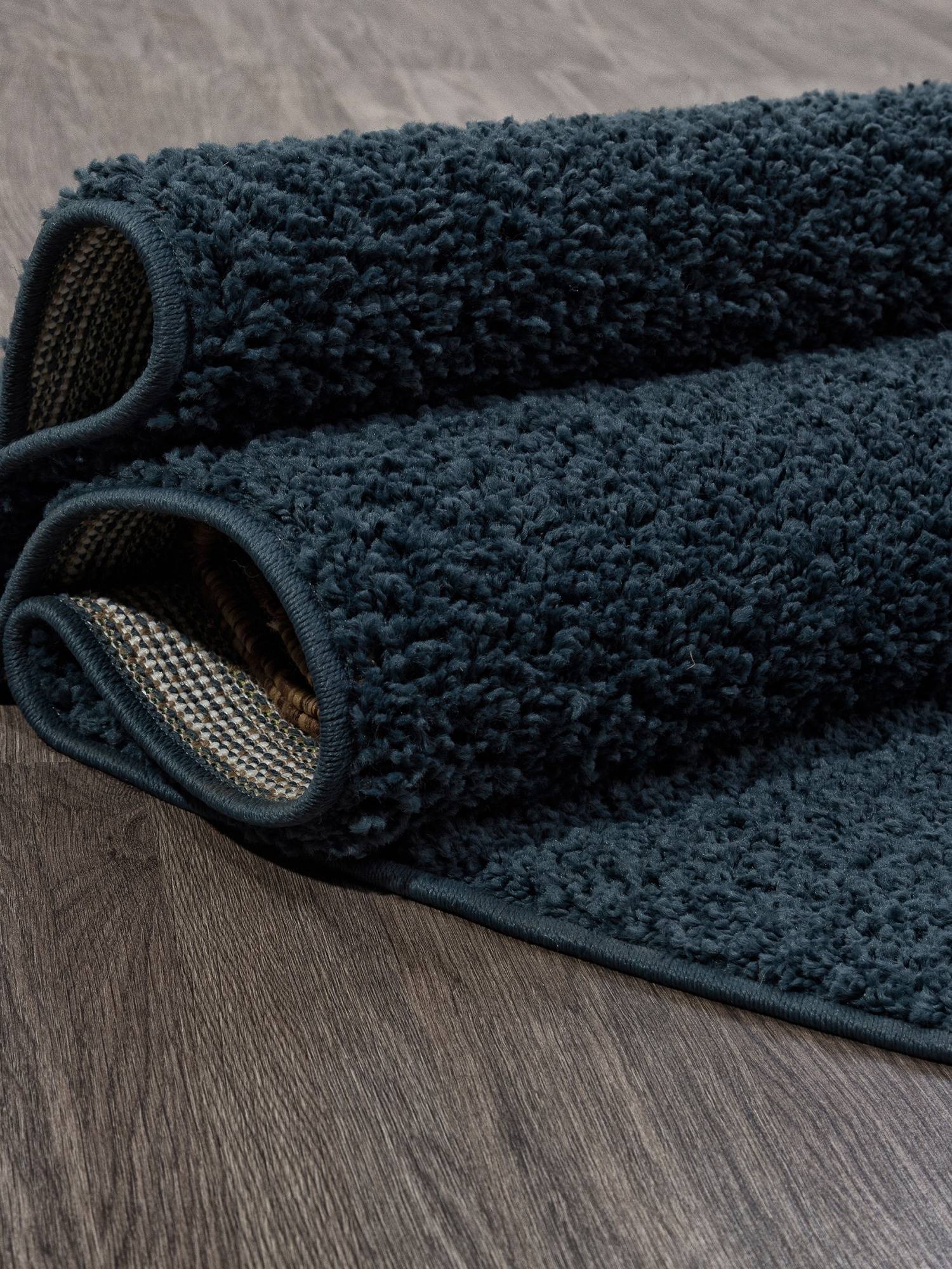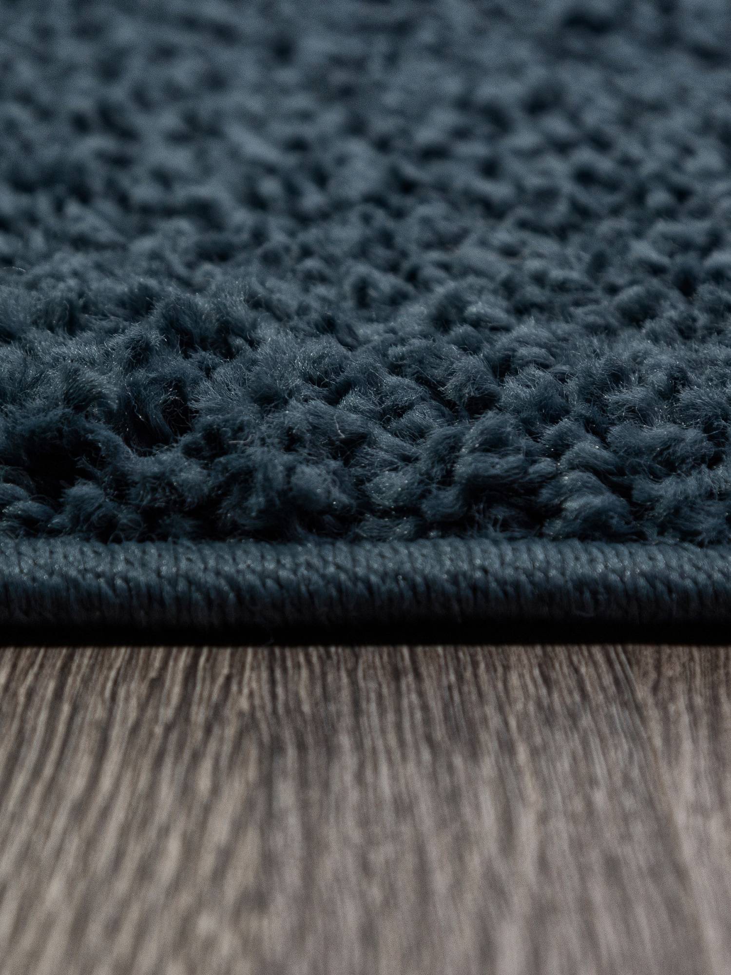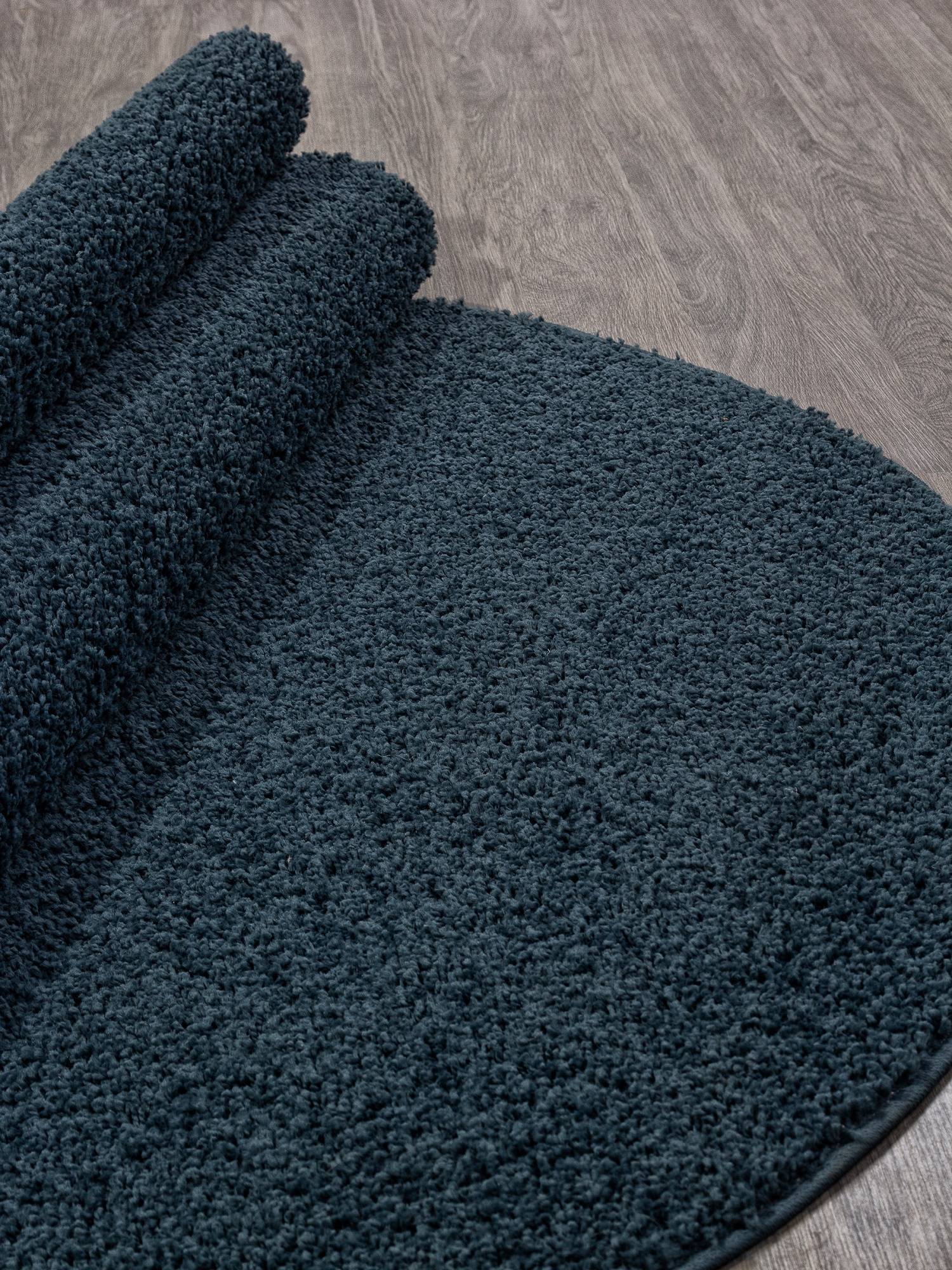 Однотонный шегги ковер в интересной темно-синей расцветке. Это ковровое изделие будет хорошим дополнением для интерьера вашего дома.