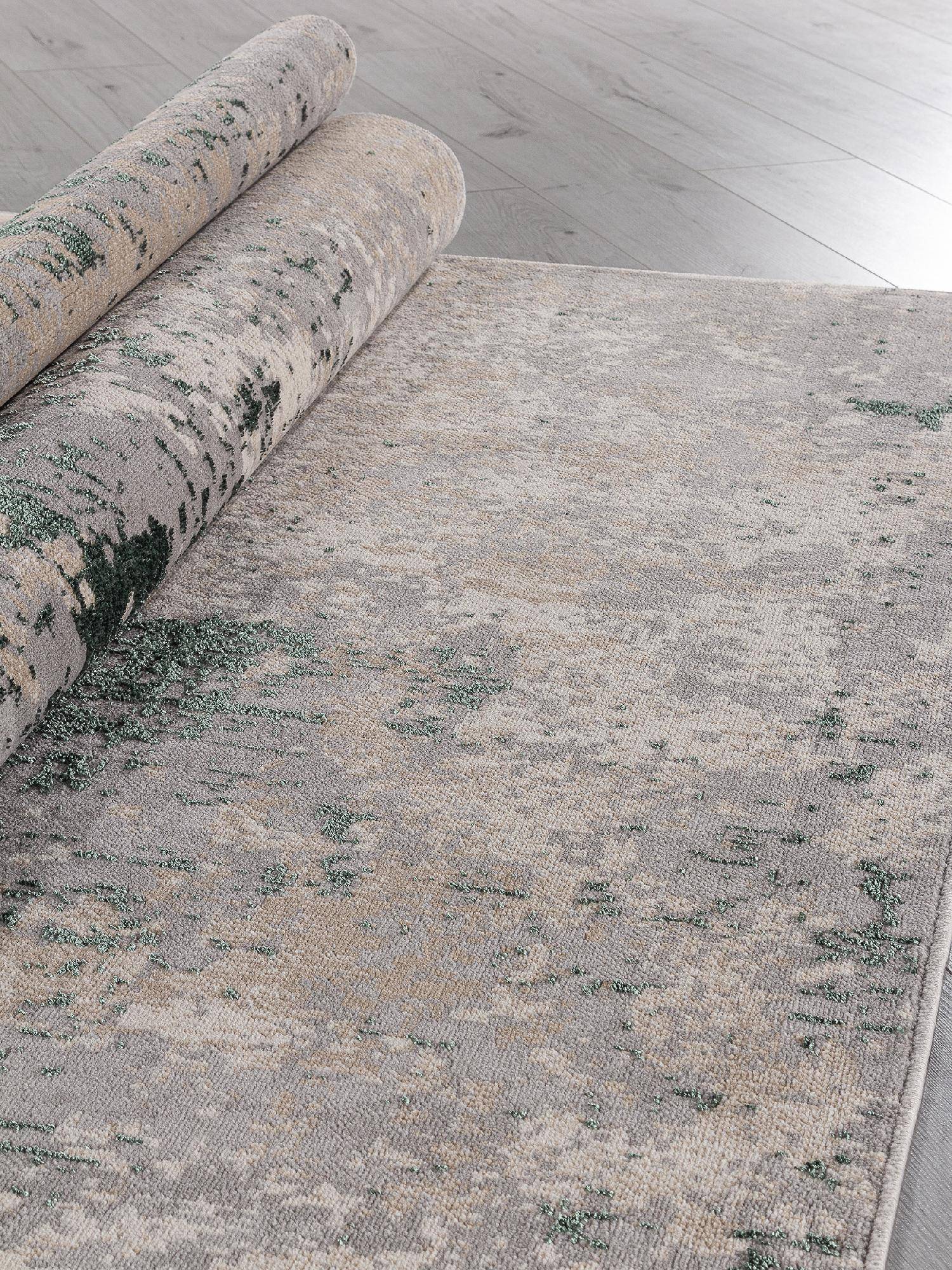 Зелено-бежевая расцветка, абстрактный рисунок и приятный ворс позволяют этому стильному ковру украсить любой современный интерьер.
