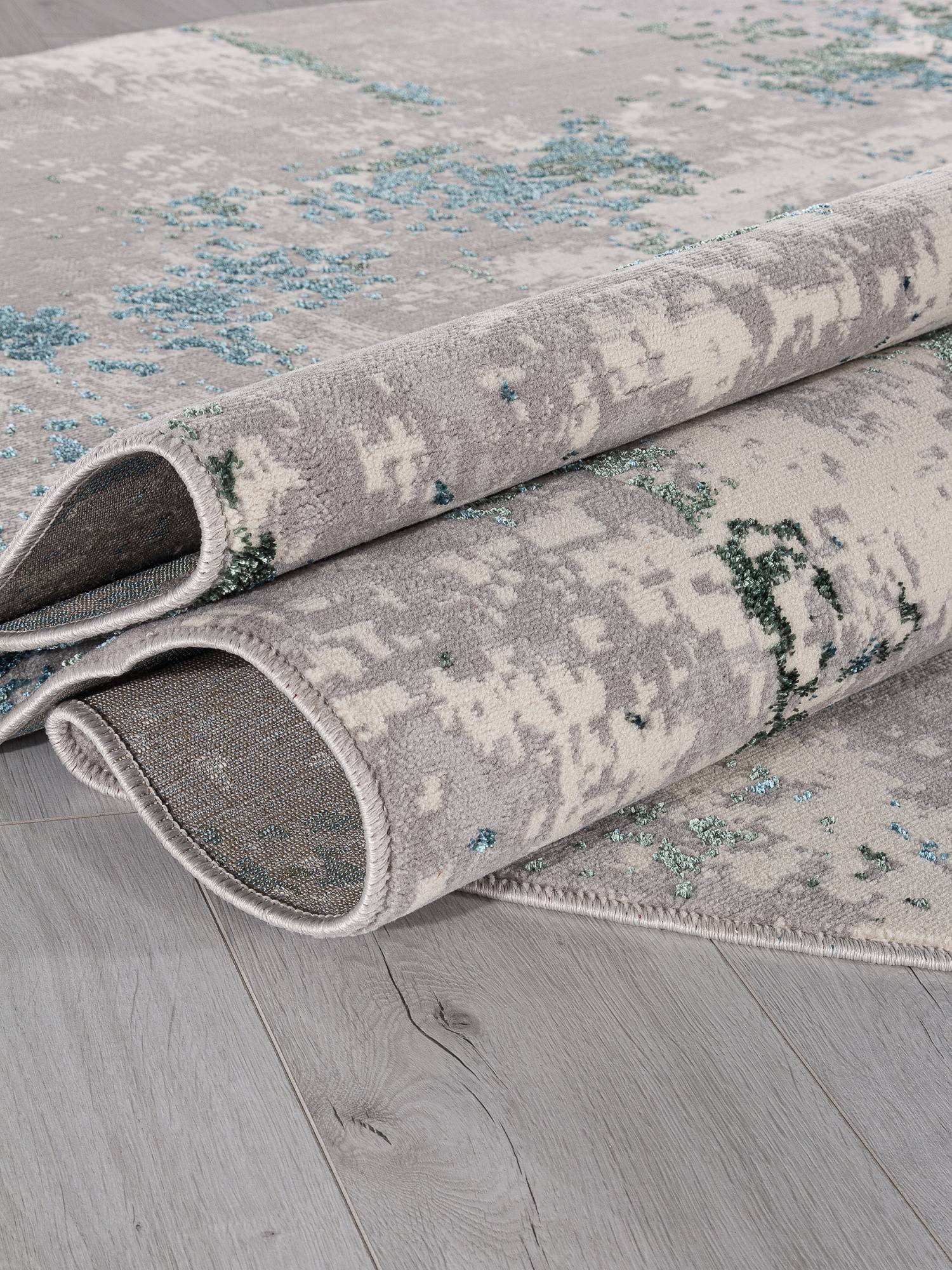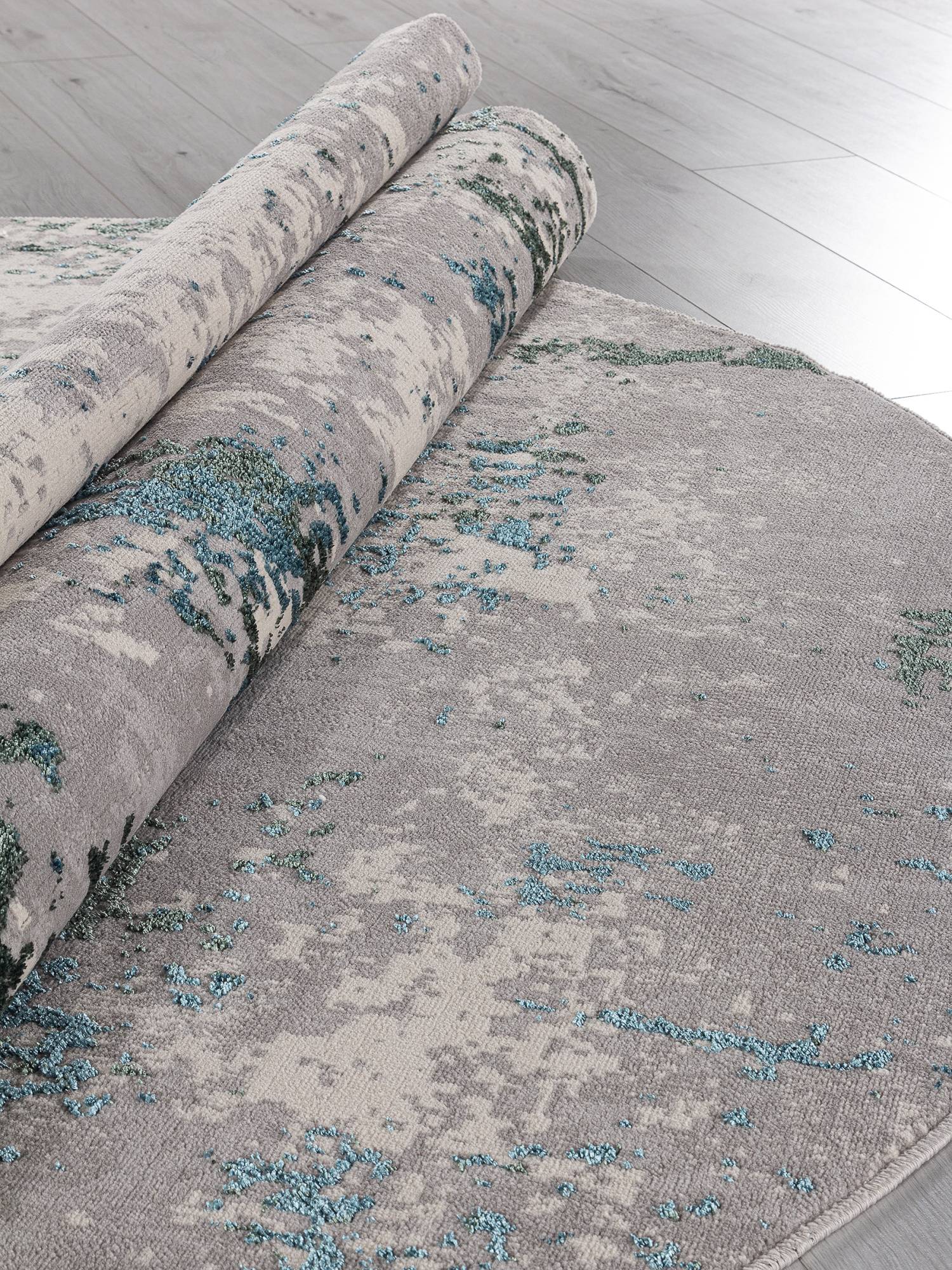Серо-синяя расцветка, овальная форма и абстрактный рисунок. Лучше всего этот ковер будет смотреться в зале или гостиной.