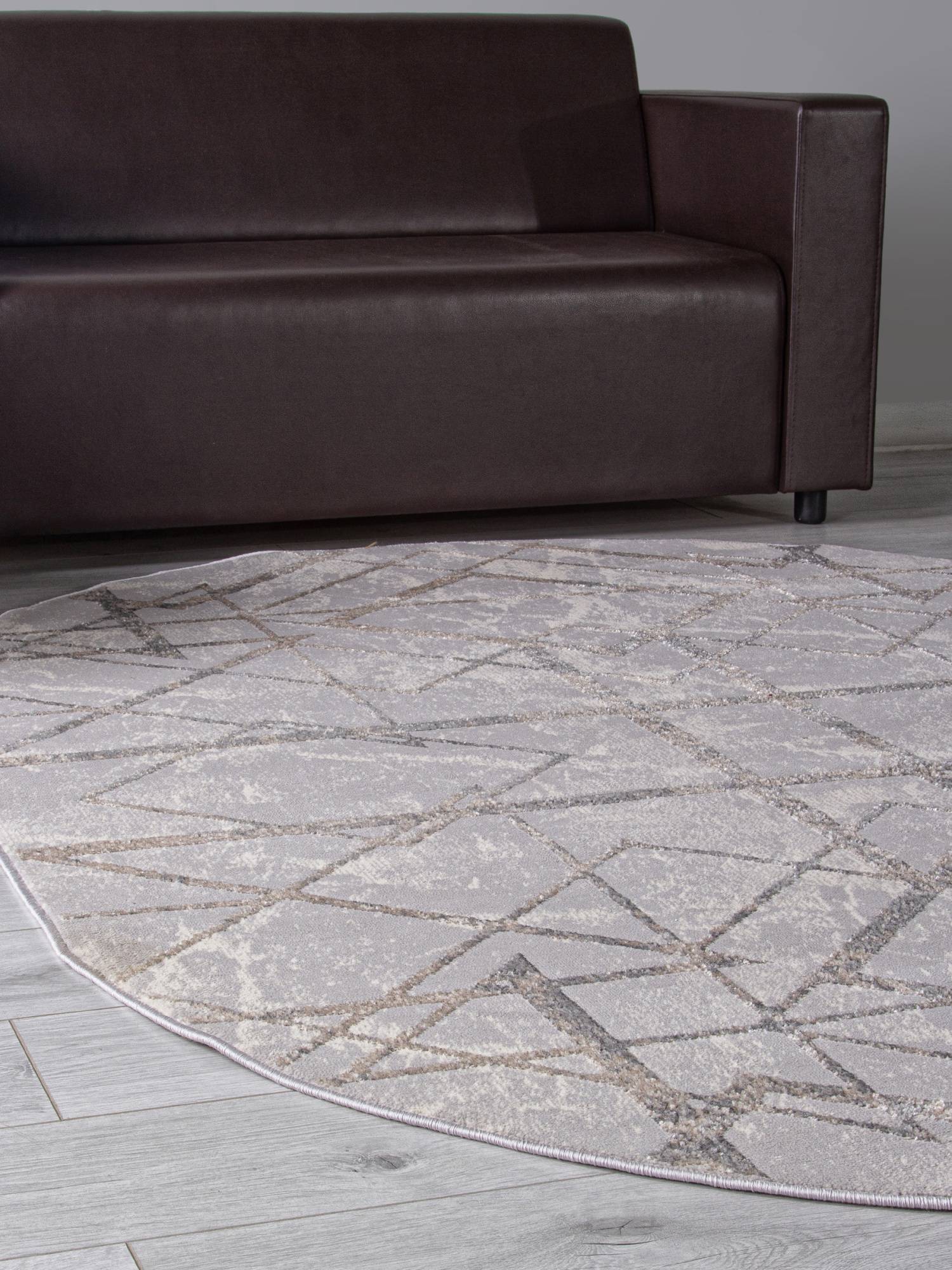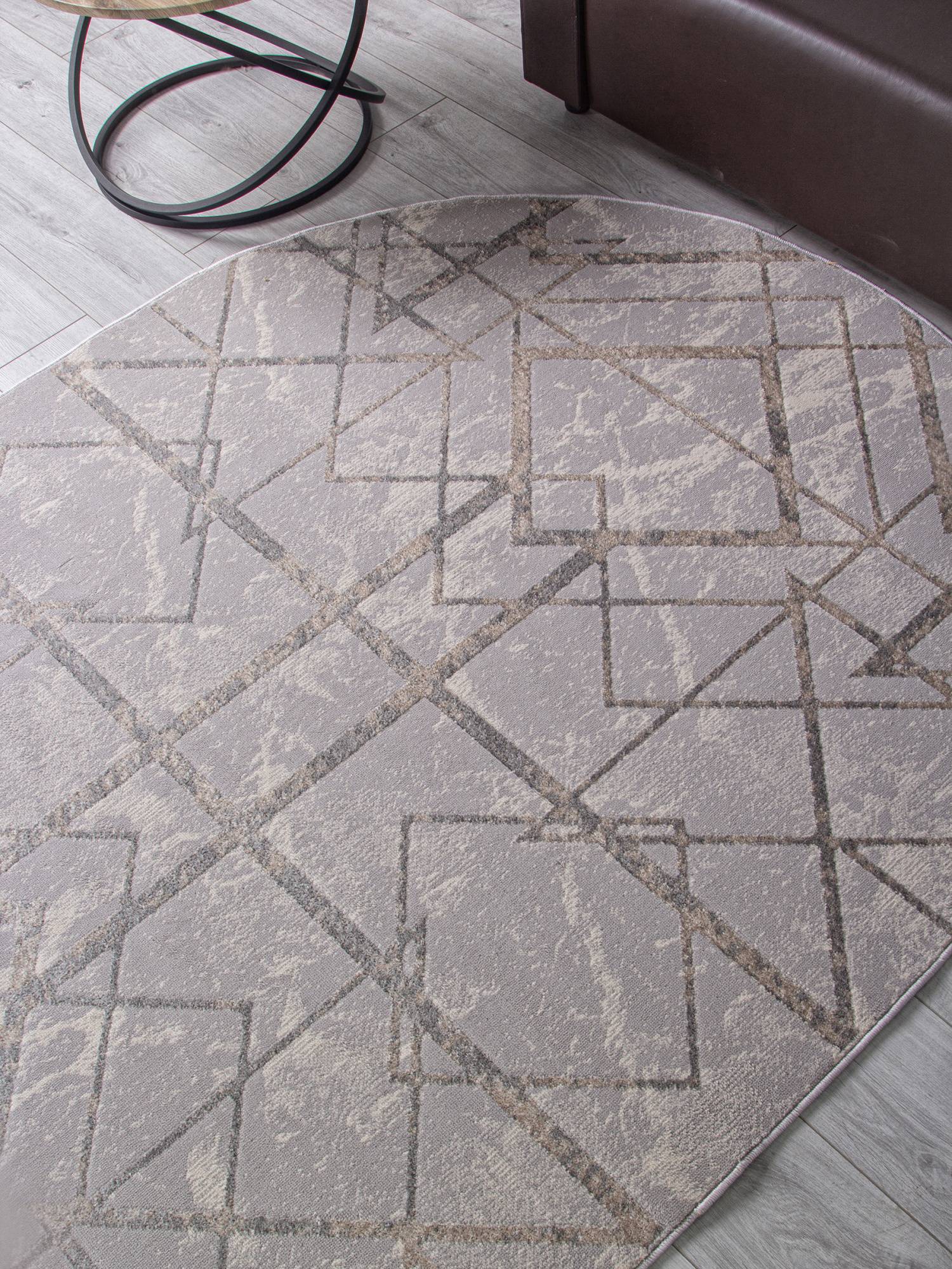 Красивый и стильный геометрический орнамент, а также приятная расцветка в бежево-серых тонах помогают этому ковру стать стильным дополнением для интерьера гостиной или зала.