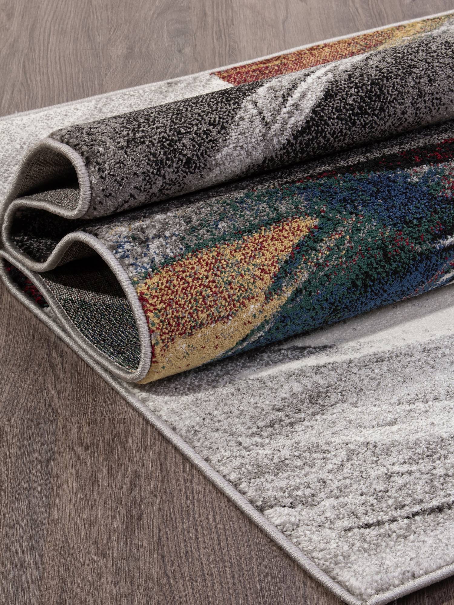Современный ковер который сочетает в себе абстрактные рисунки и четкое геометрическое разграничение. Такое стильное ковровое изделие станет хорошим украшением для любого современного интерьера.