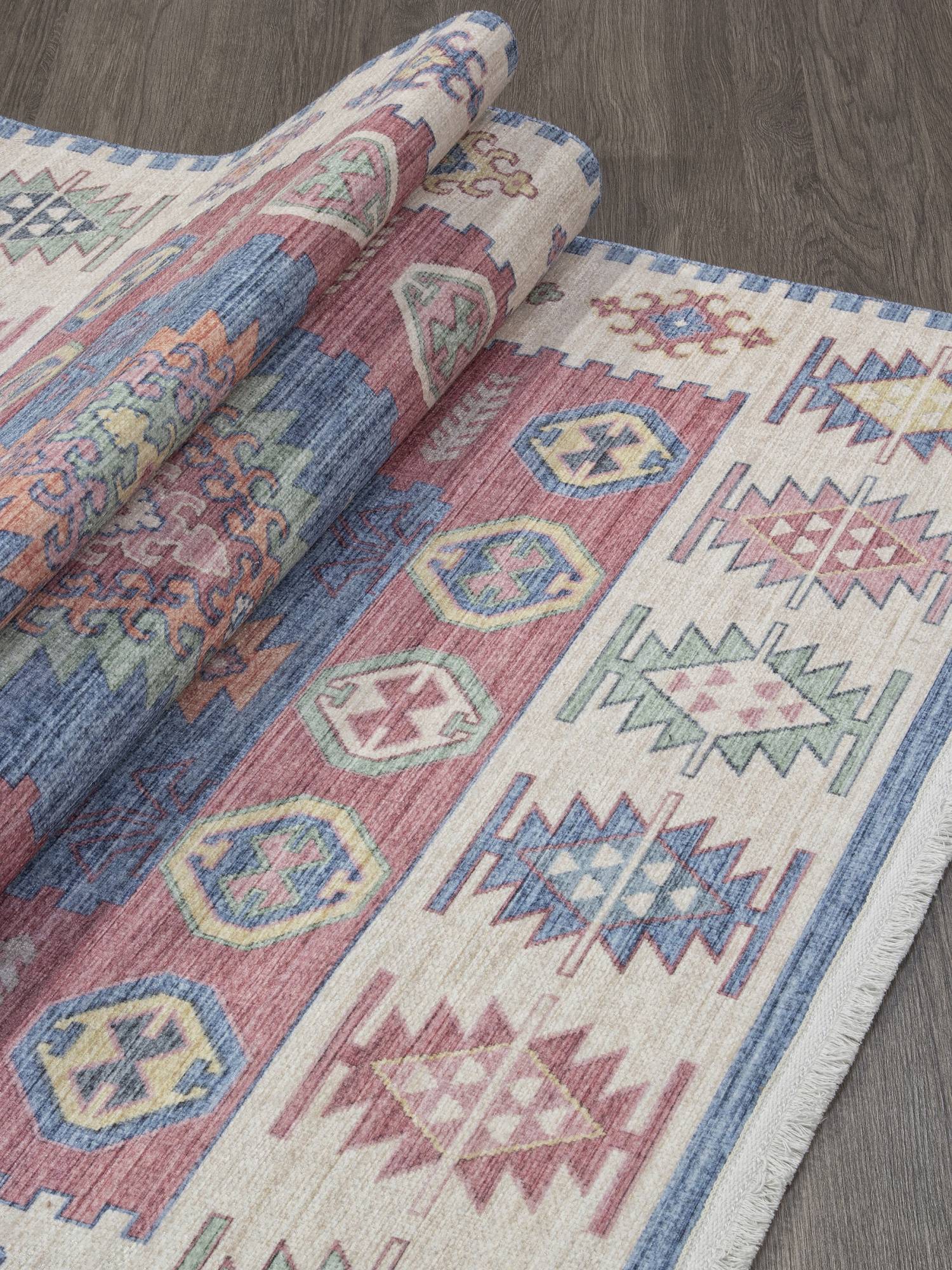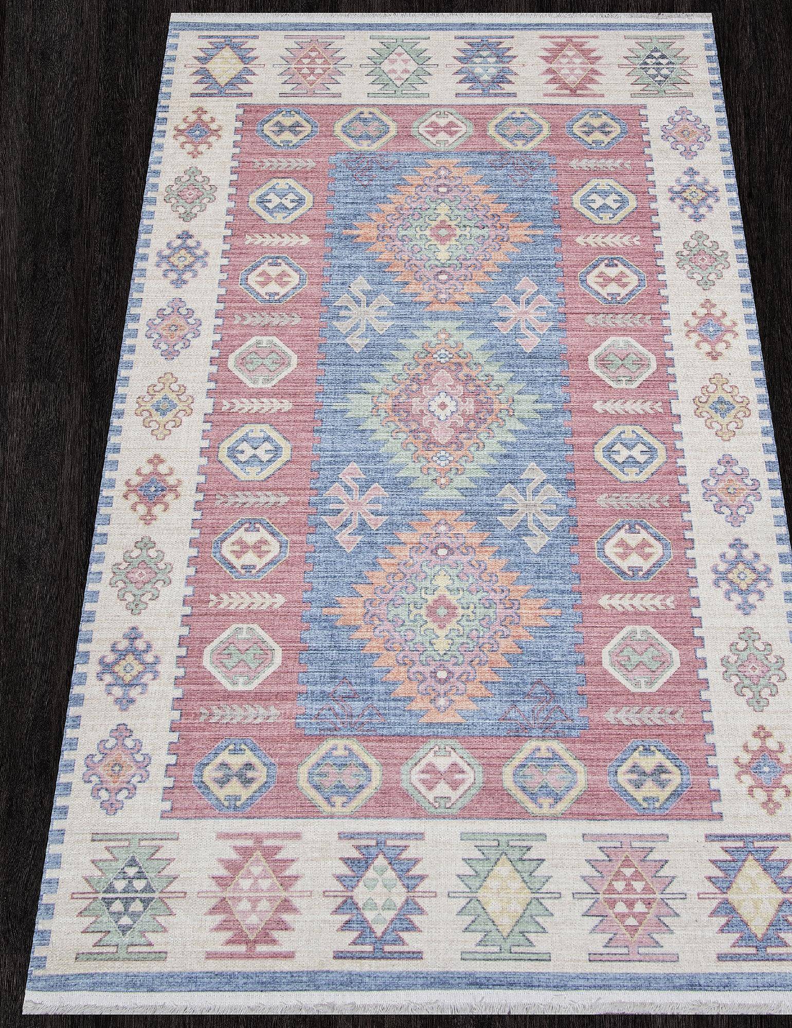 Интересная расцветка и оригинальный узор отлично дополняют друг друга. Такое ковровое изделие станет хорошим украшением для гостиной или зала в вашем доме.