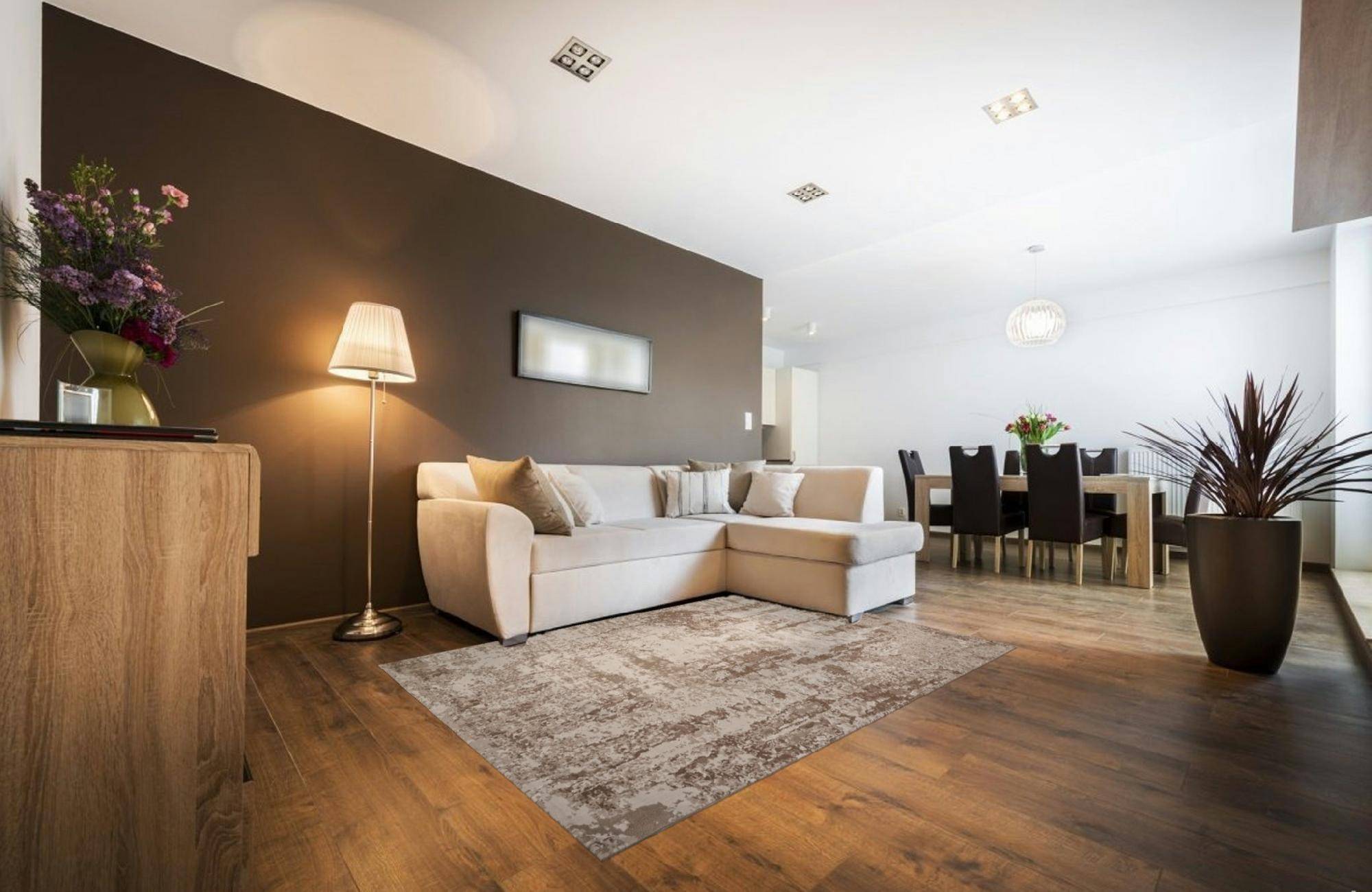 Бежево-коричневая расцветка, приятный рельефный ворс и высокое качество изготовления позволяют этому ковру стать стильным дополнением для интерьера вашего дома.