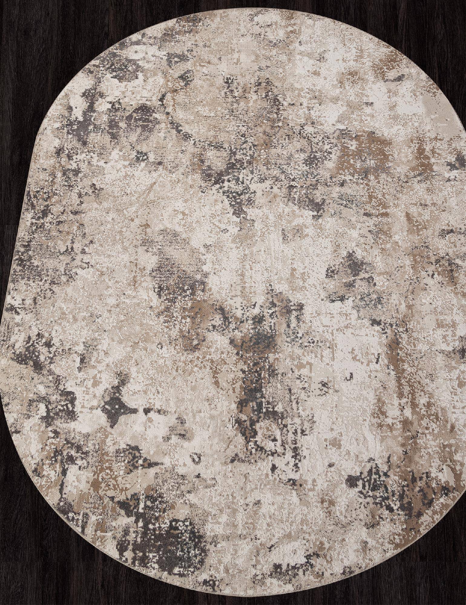 Абстрактный рисунок, стильная овальная форма и нейтральная расцветка. этот ковер отлично подходит для интерьера зала или гостиной.
