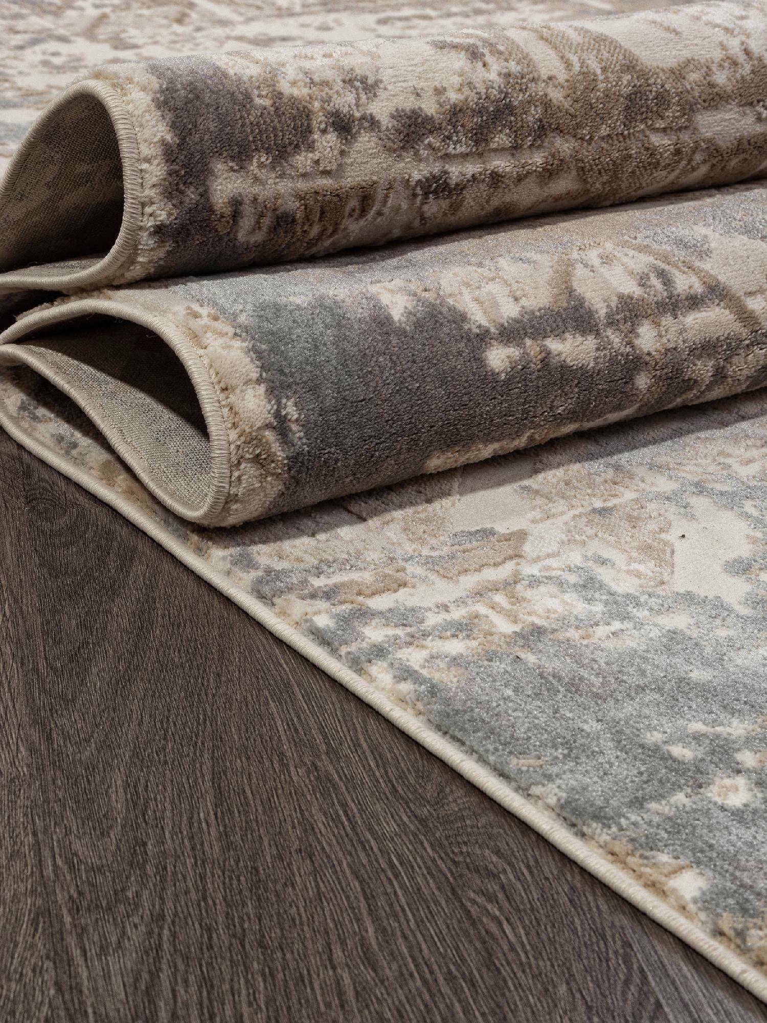Оригинальная и необычная серо-бежевая расцветка рисунка с геометрическими элементами позволяет этому ковру стать стильным украшением для интерьера вашего дома.