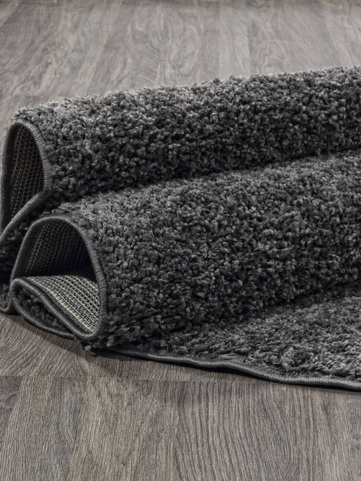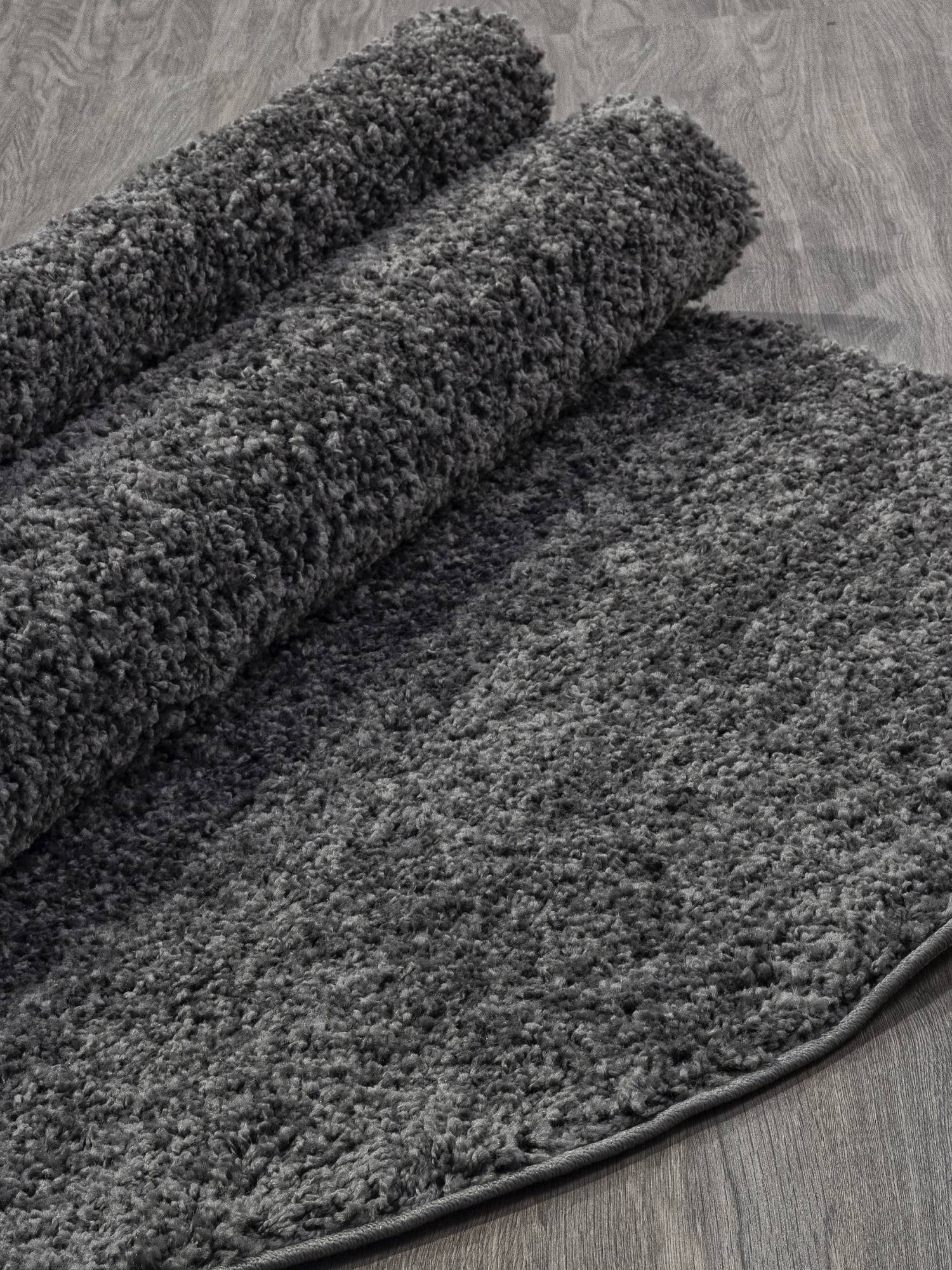 Стильный, мягкий и приятный шегги-ковер в темной серой расцветке. Это ковровое изделие будет интересным дополнением для интерьера вашего дома.