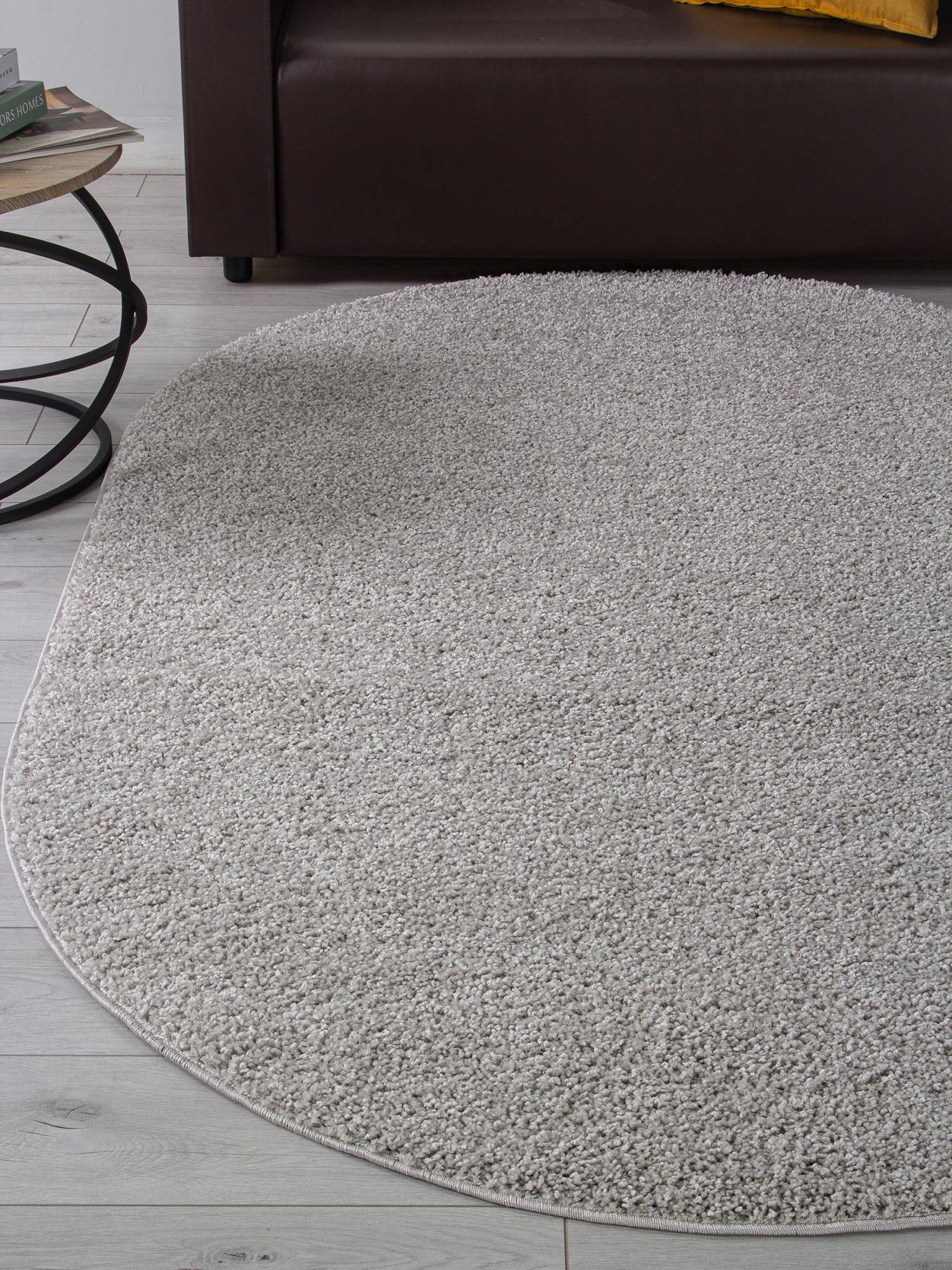 Стильный, овальный шегги-ковер в однотонной серой расцветке. Этот ковер будет интересным украшением ...
