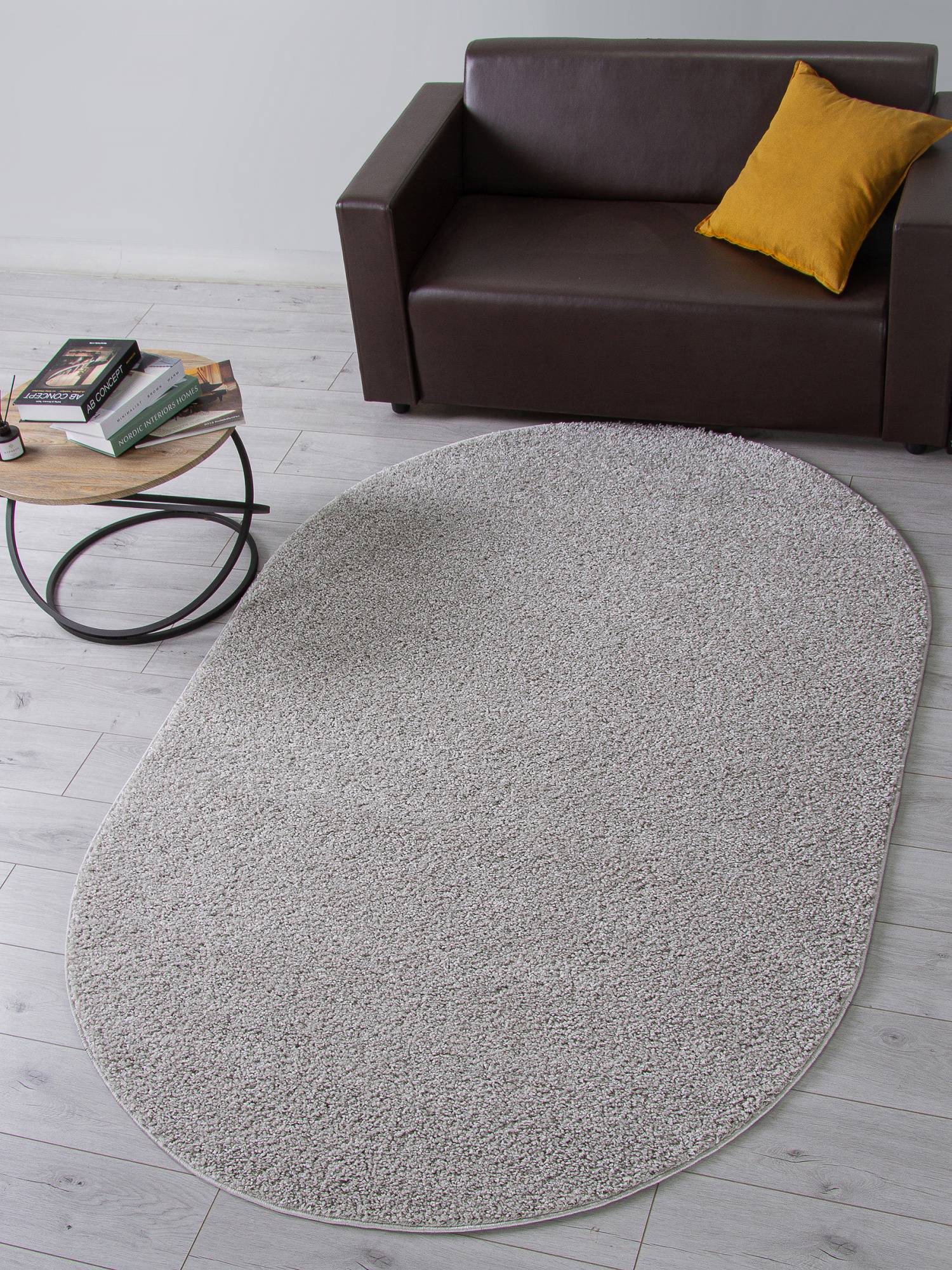Стильный, овальный шегги-ковер в однотонной серой расцветке. Этот ковер будет интересным украшением для интерьера вашего дома.