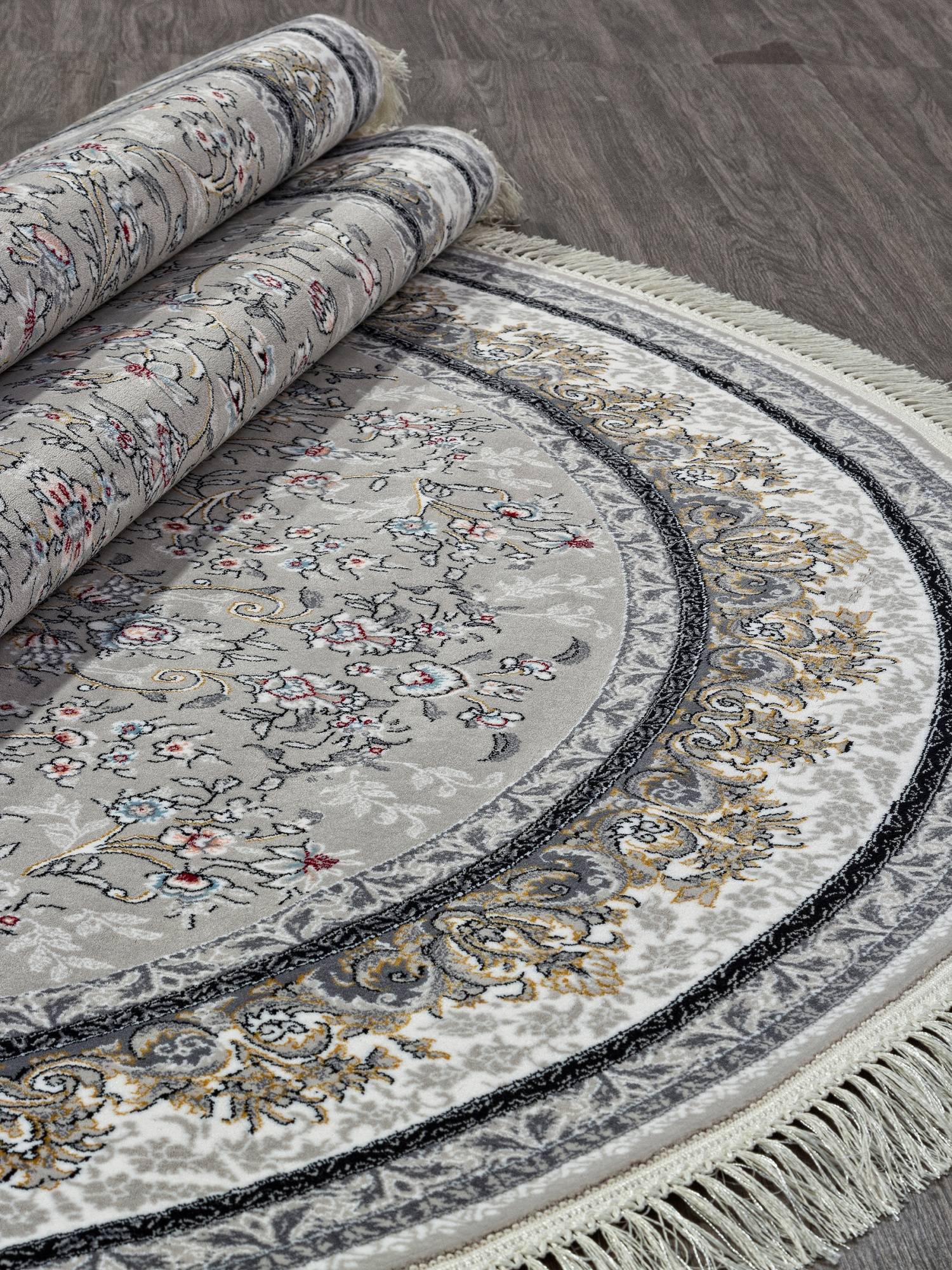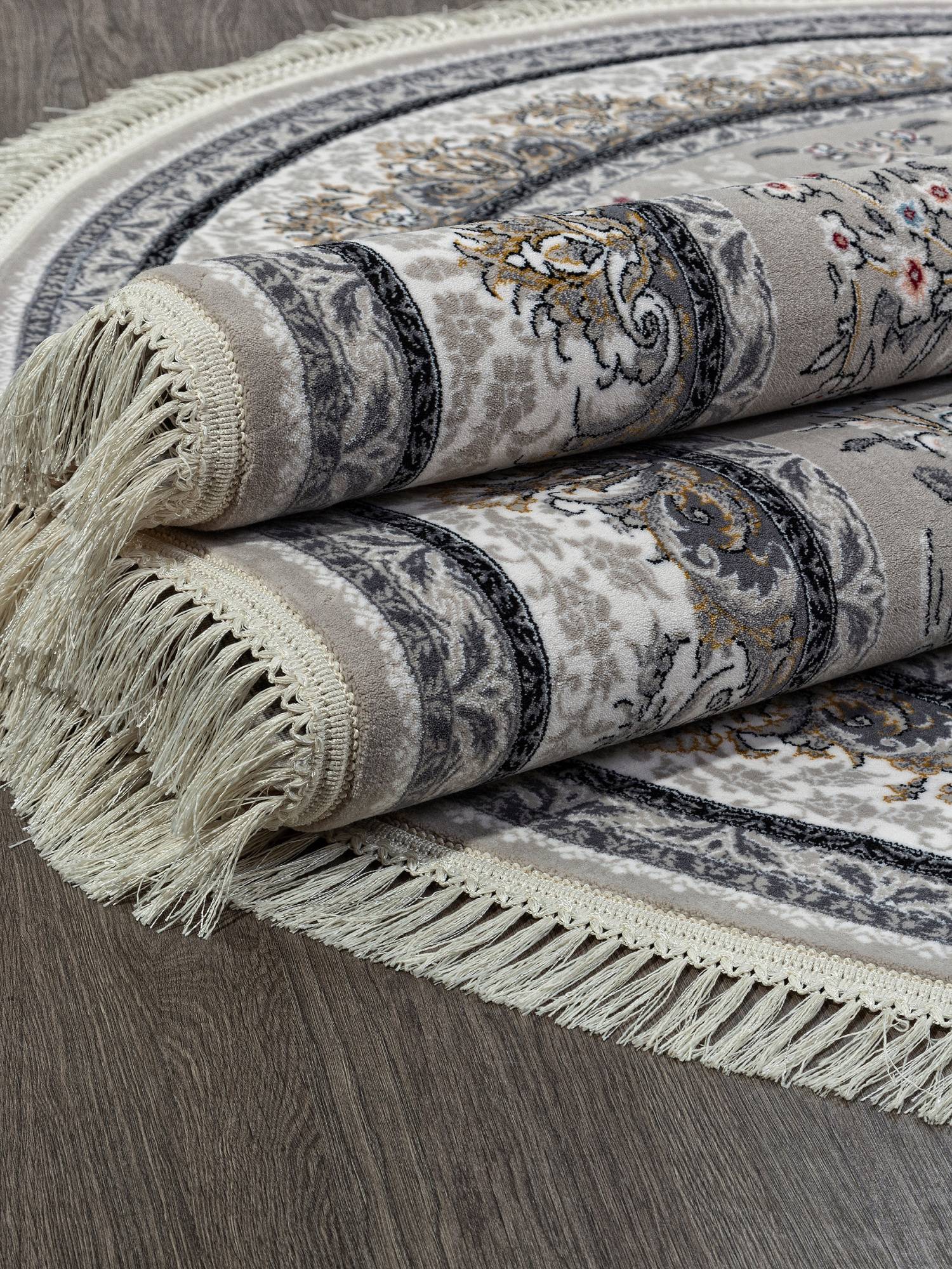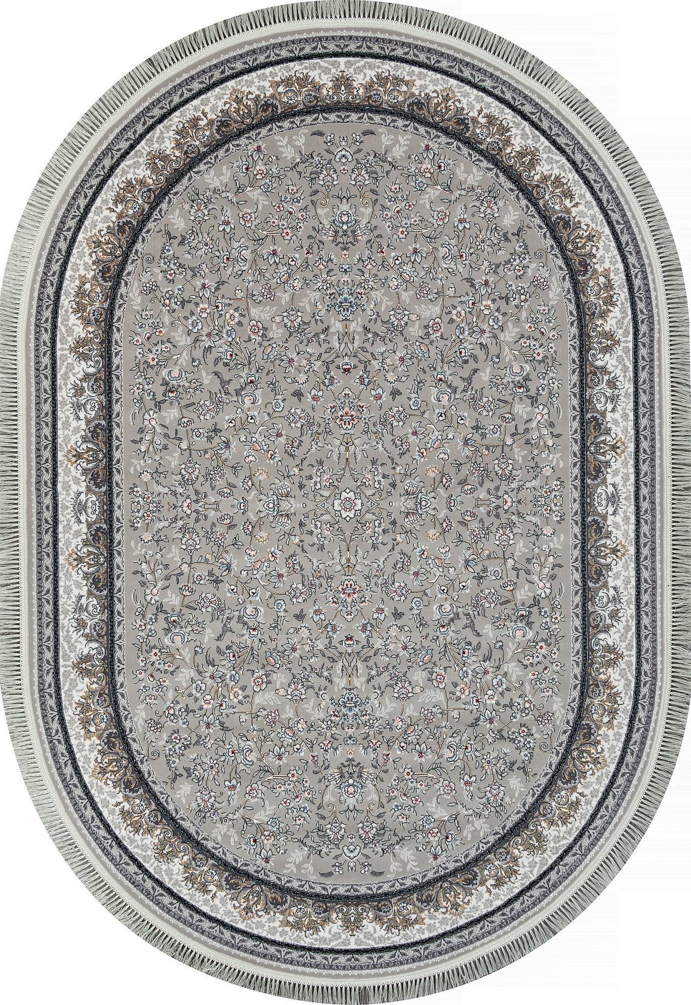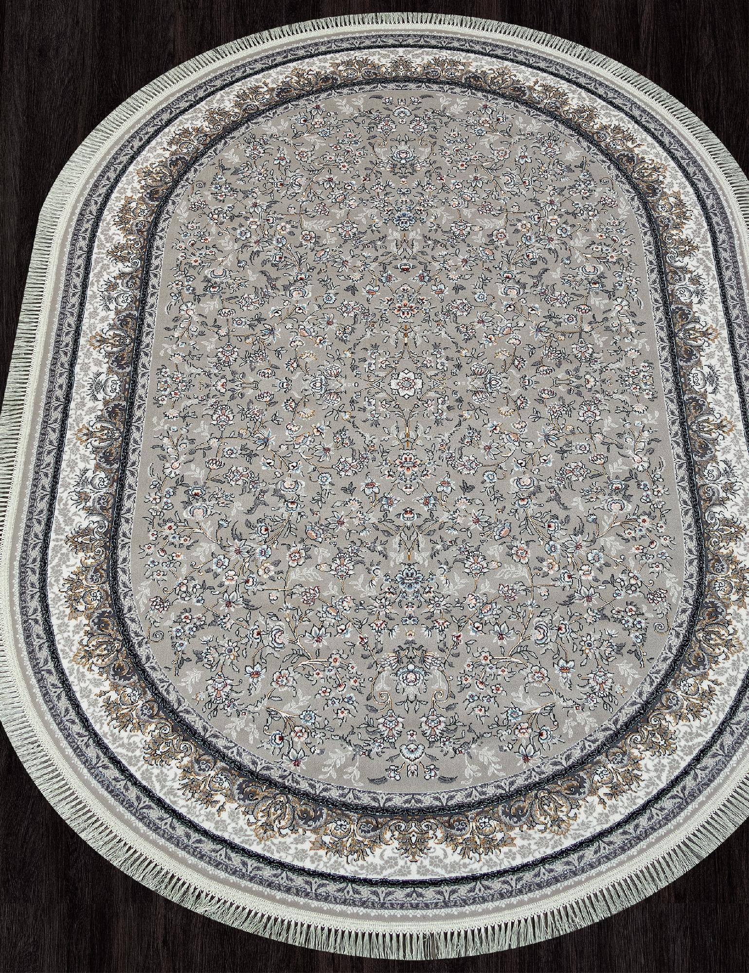 Красивый овальный ковер в серой цветовой гамме с красивым орнаментом в классическом стиле.