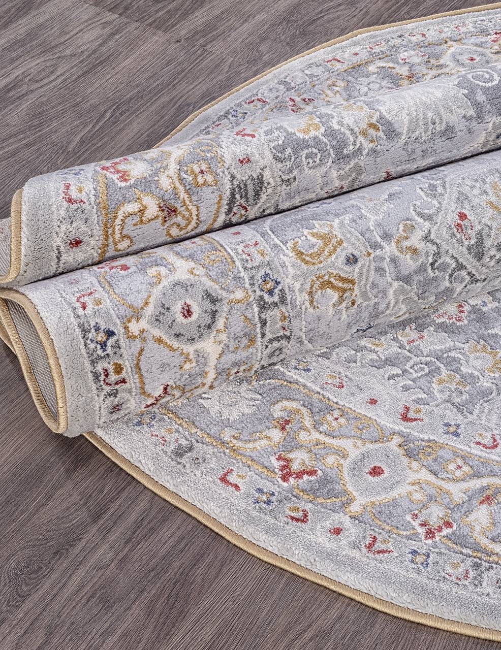 Рисунок в классическом стиле и оригинальной расцветке которая имитирует винтажную потертость. Такое ковровое украшения будет отлично смотреться в гостиной, зале или столовой.