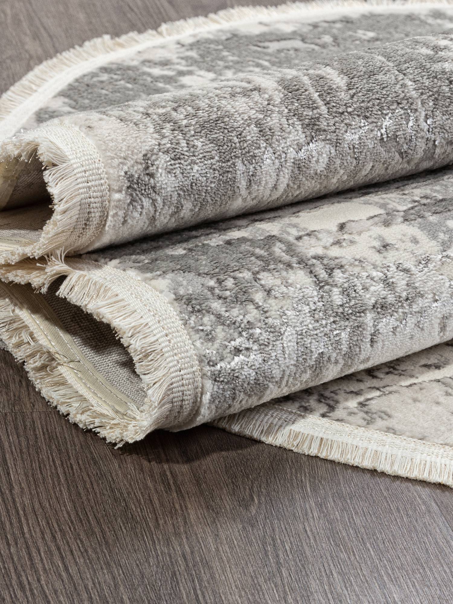Абстрактный рисунок в серой цветовой гамме, модная овальная форма и приятный ворс. Такой ковер будет хорошо смотреться в гостиной, зале или столовой.