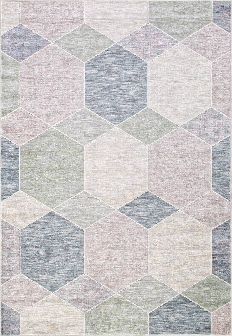 Интересный геометрический рисунок в приятной расцветке. Такое ковровое покрытие может стать идеальным украшением для современного интерьера.