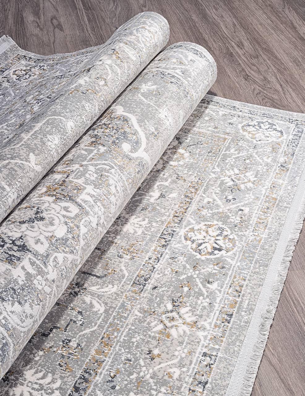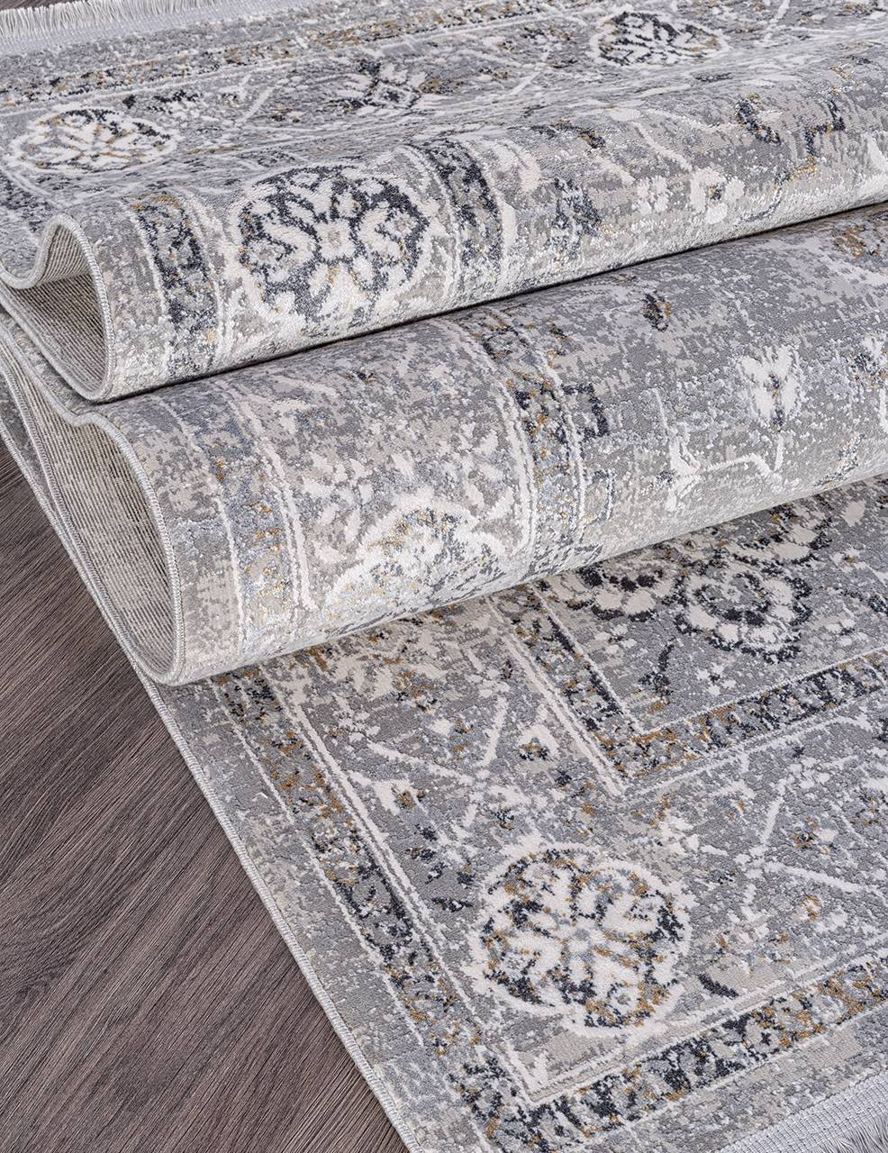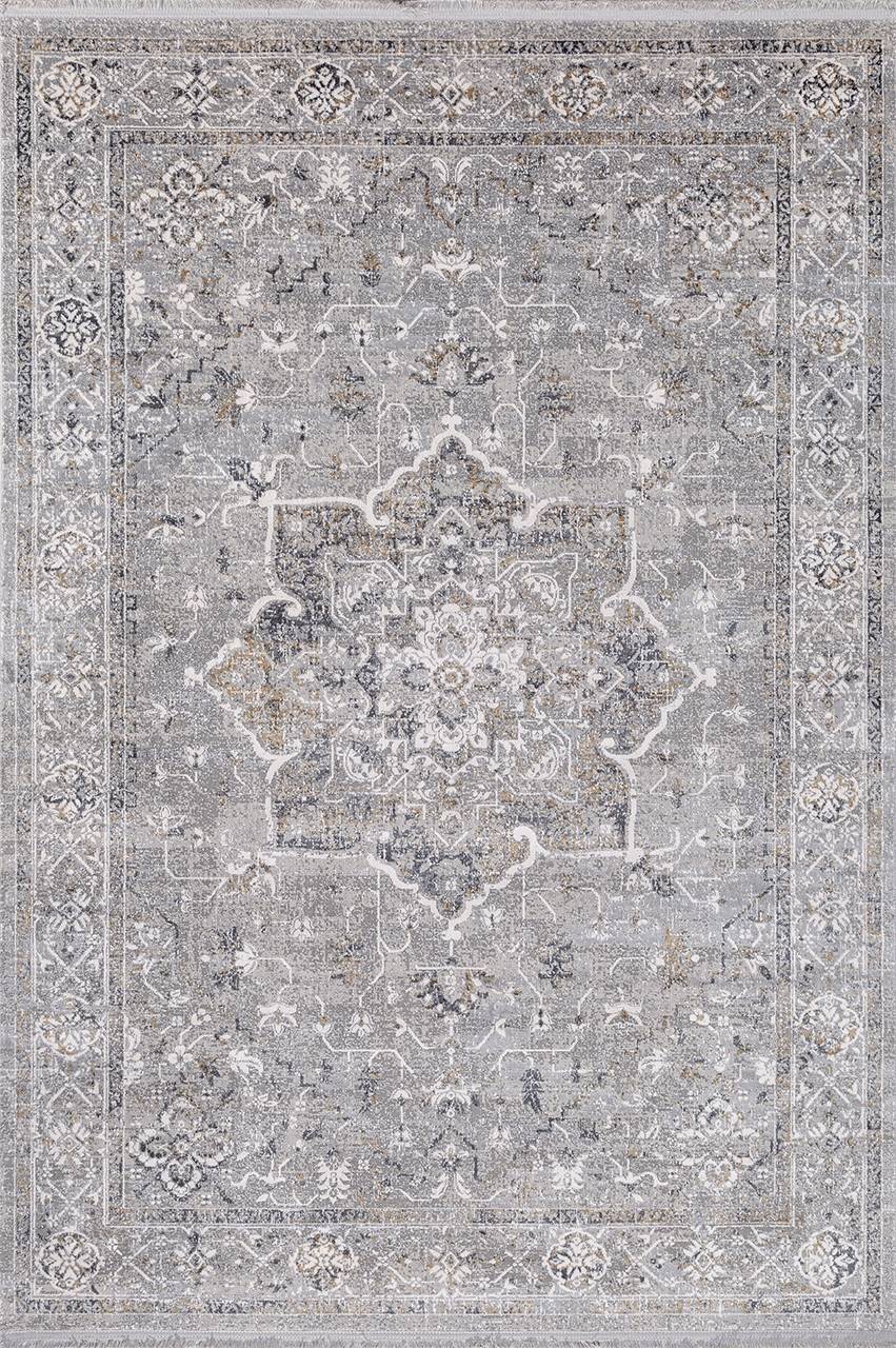Ковер из вискозы в классическом стиле и приглушенном сером цвете от турецкого производителя Milat. Благодаря добавлению полиэстера (20%) ковер прослужит более длительный срок.