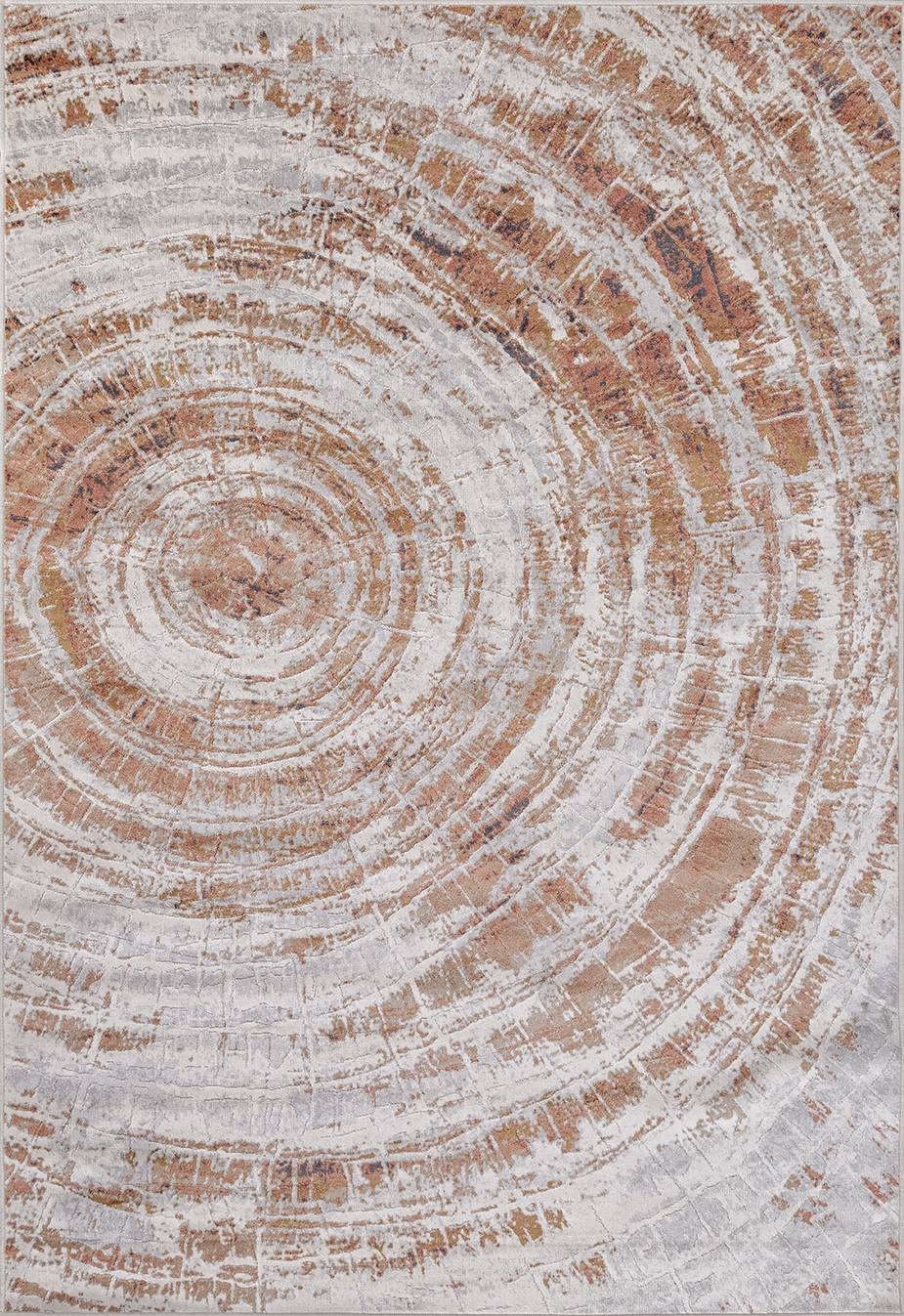 Интересный рисунок в виде годичных колец дерева в серо-коричневой расцветке и приятная вискозная шелковистость позволят этому ковру стать красивым и оригинальным украшением для любого интерьера.