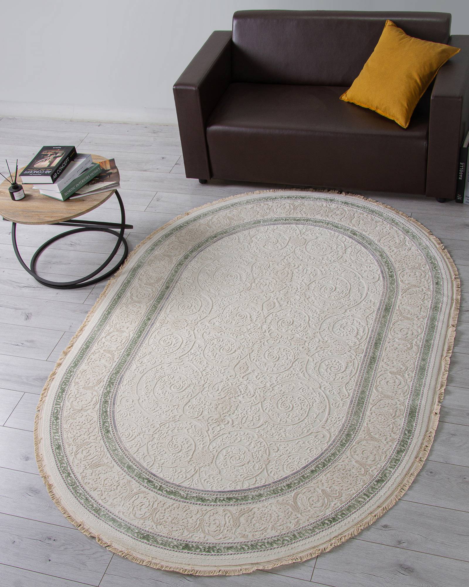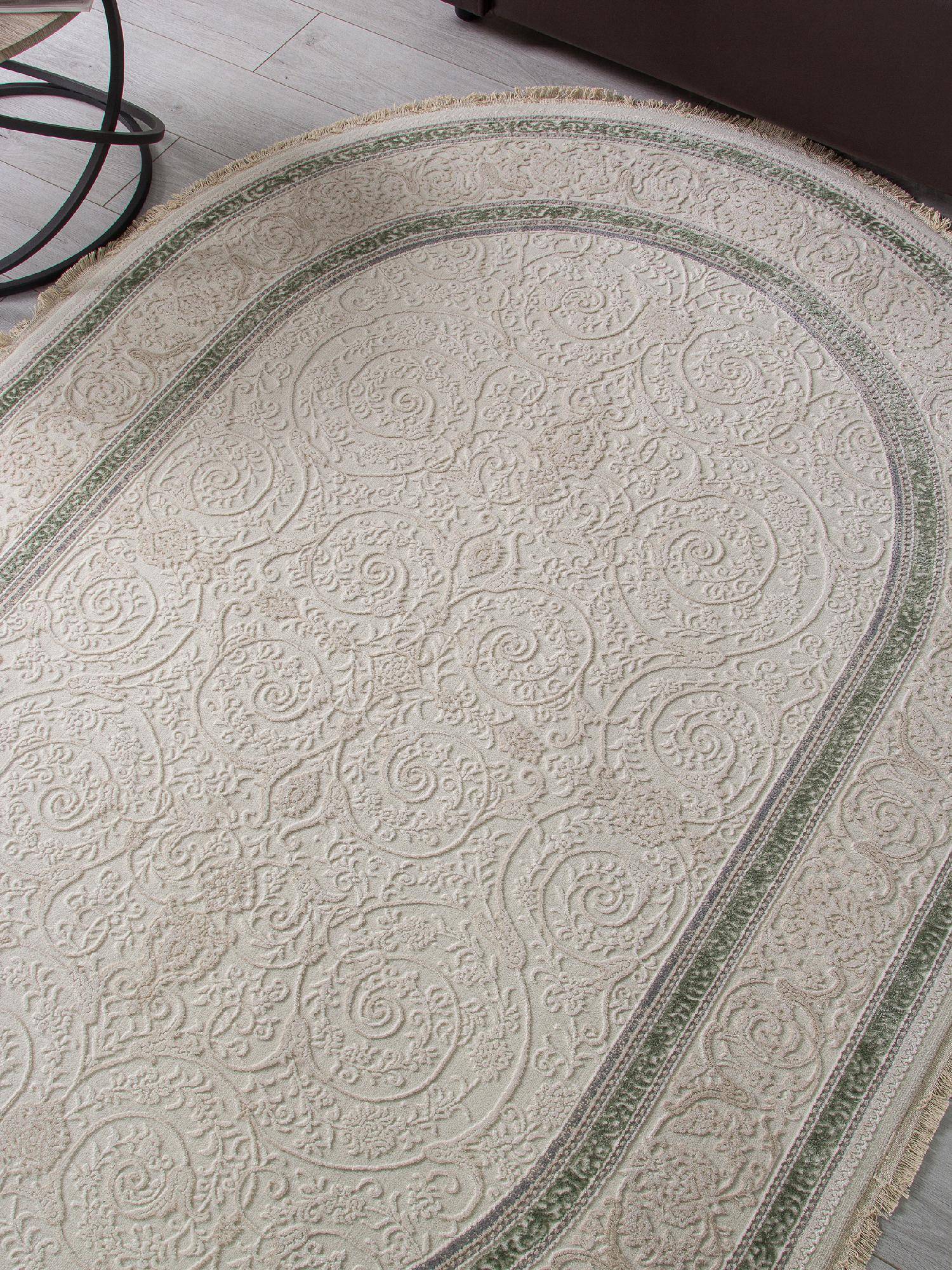 Красивый, светлый ковер овальной формы. Классический орнамент и высококачественные материалы позволяют этому ковру стать стильным дополнением для интерьера вашего дома.