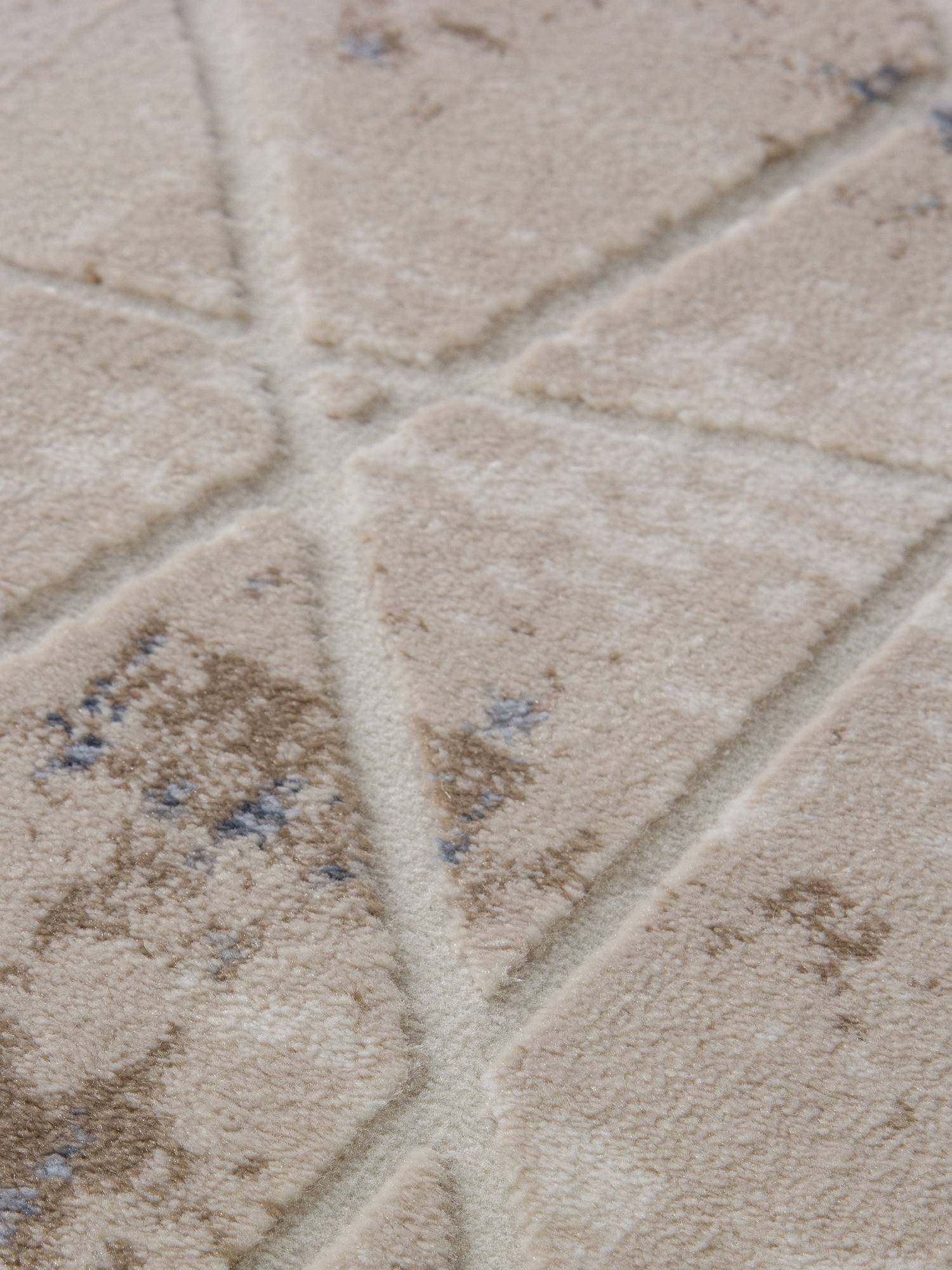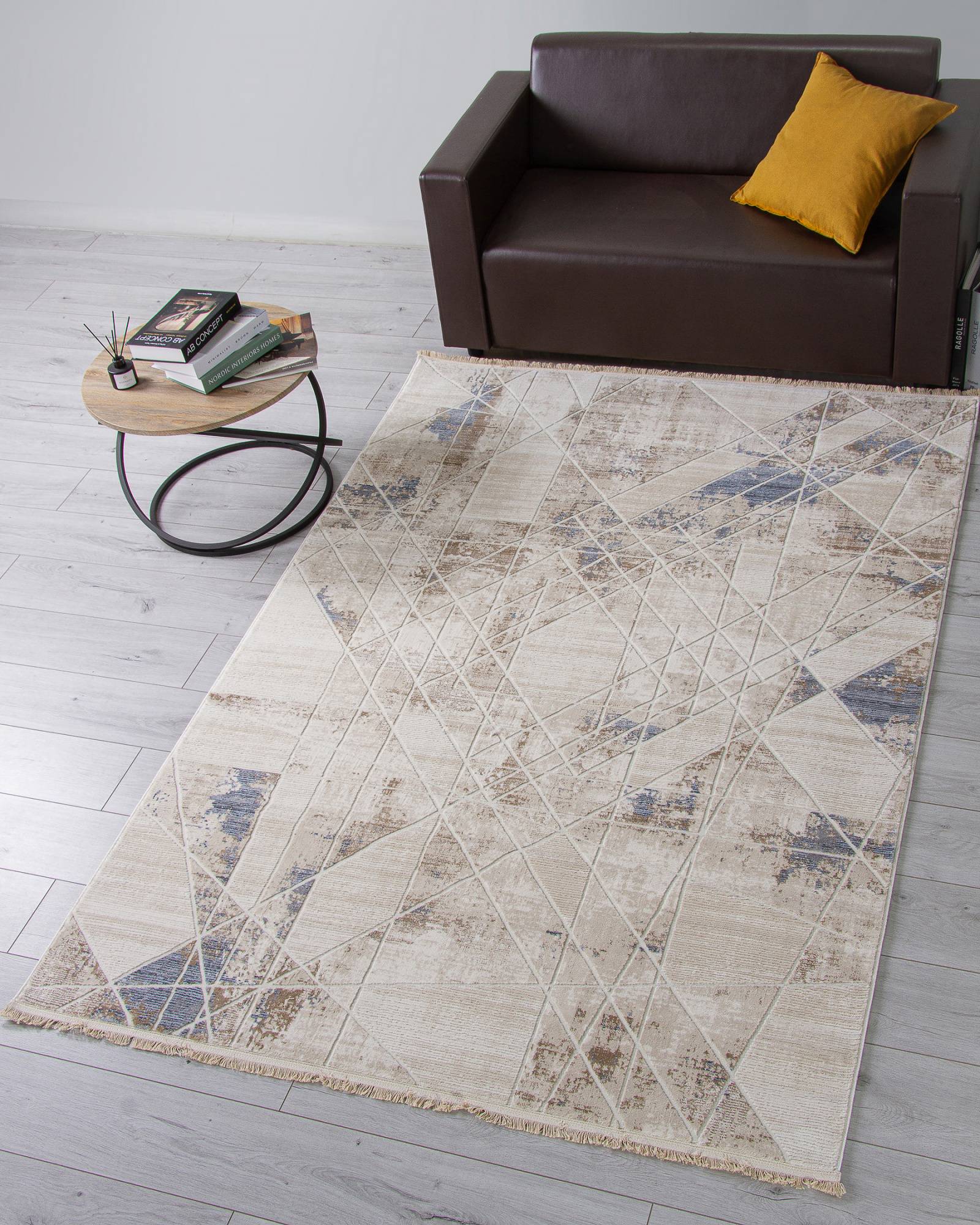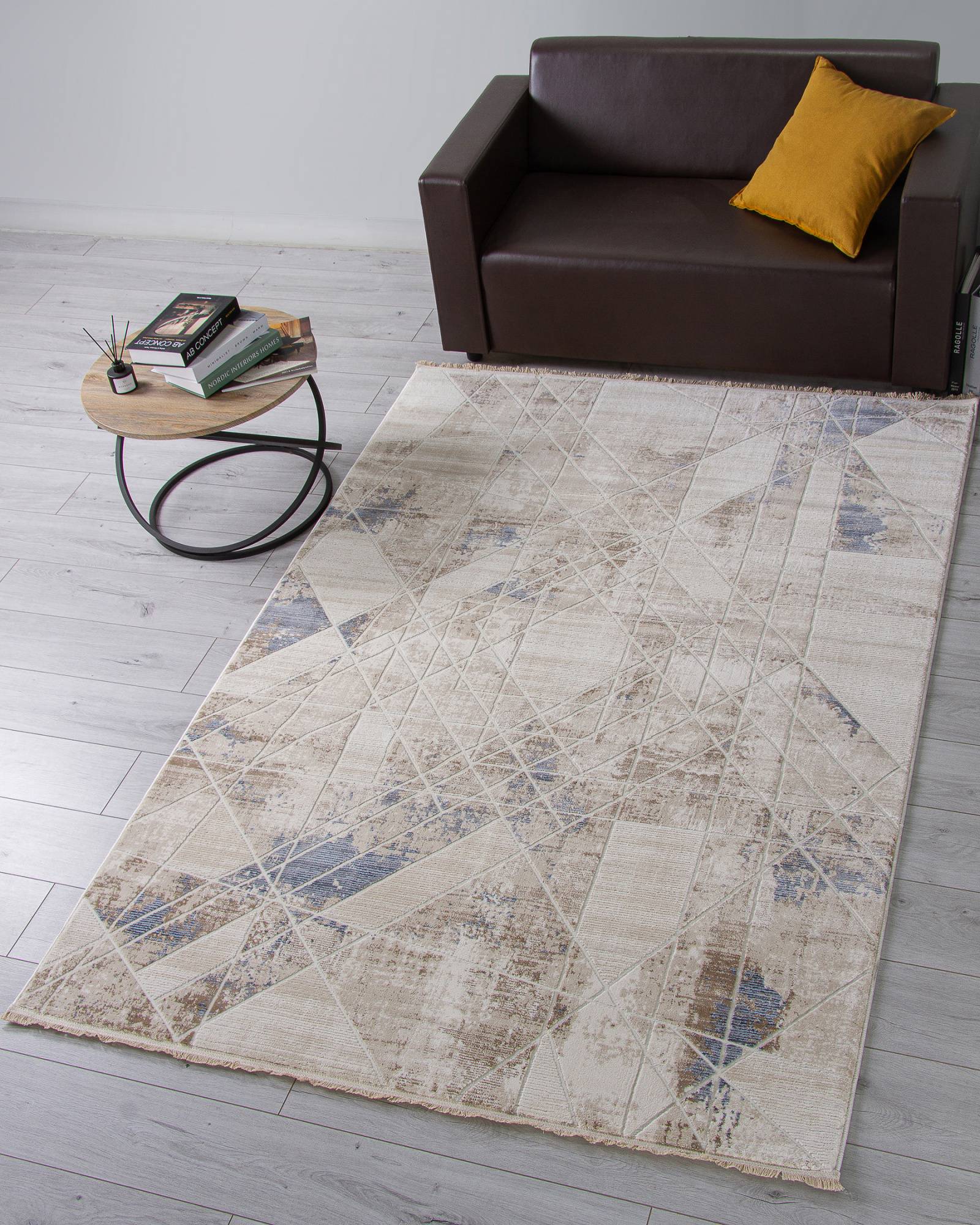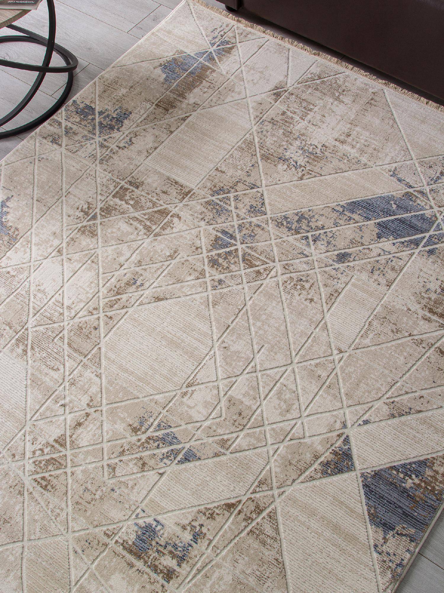 Оригинальный и необычный, современный рисунок с геометрическими элементами позволит этому ковру стать хорошим дополнением для интерьера вашего дома.
