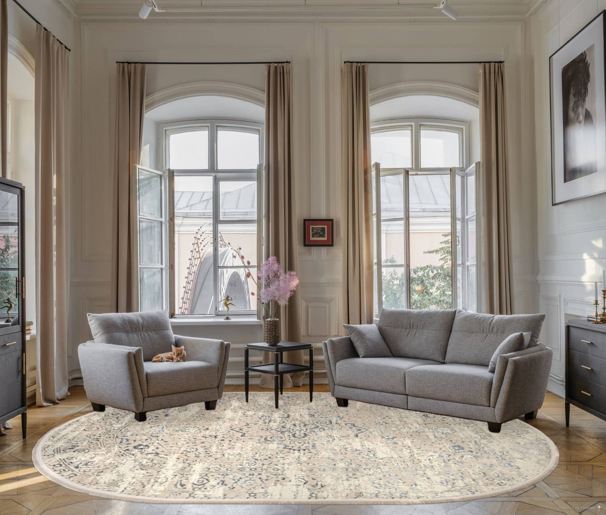 Стильный овальный ковер в дизайне аля винтаж, станет оригинальным дополнением к интерьеру вашего дома.