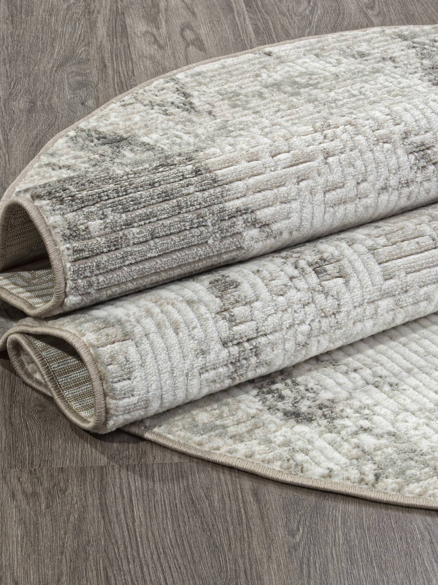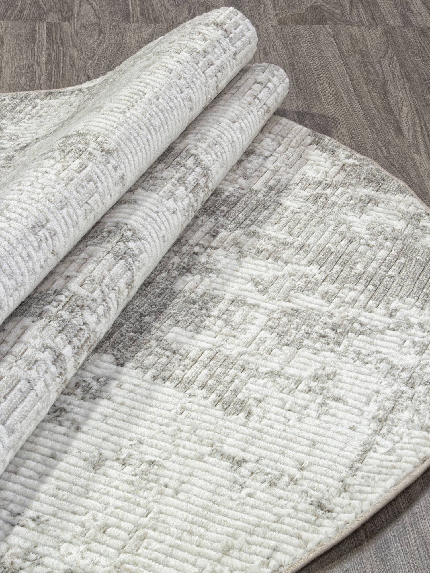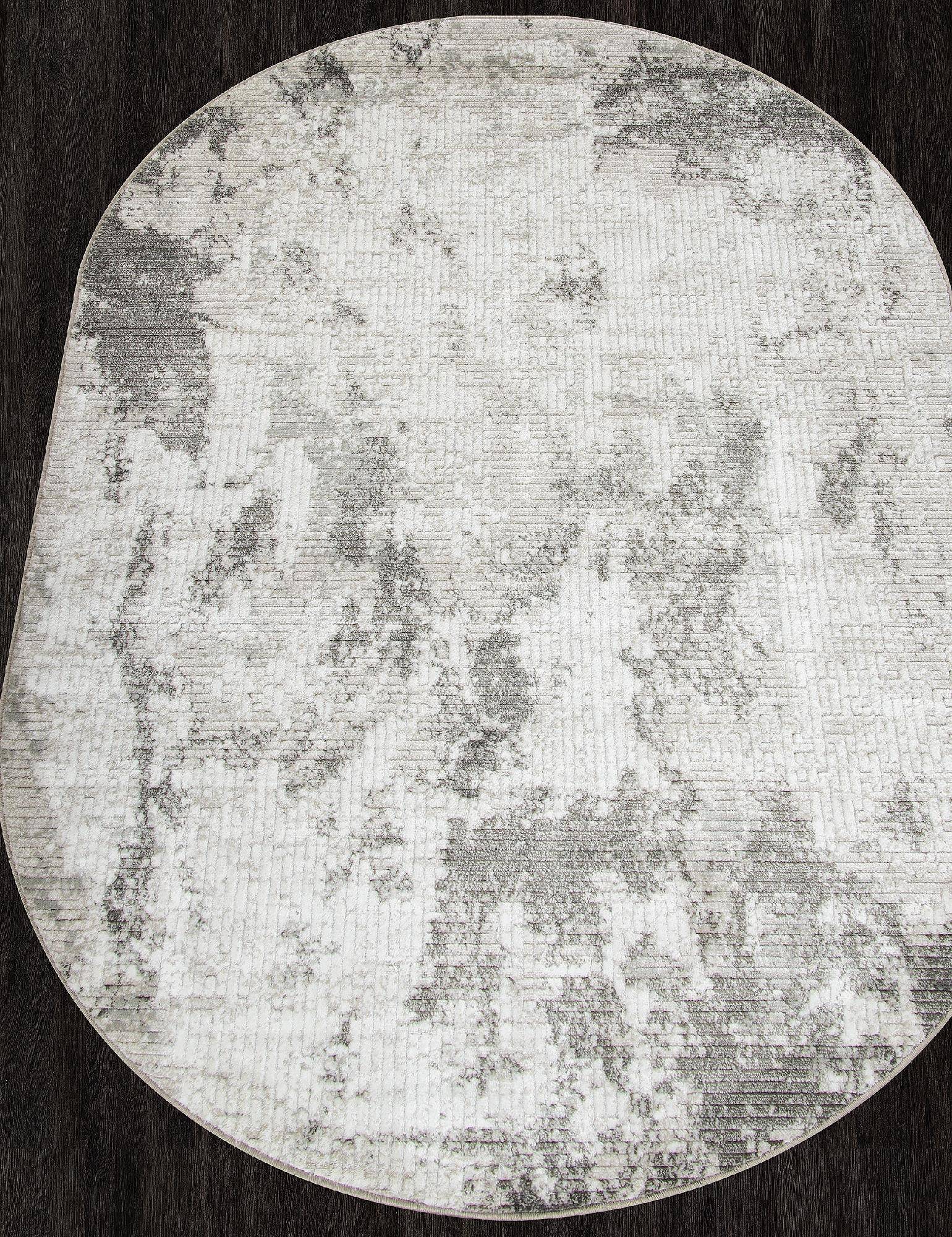 Светло-серая расцветка, стильный абстрактный рисунок и модная овальная форма. Это ковровое изделие будет отличным украшением для вашего дома.