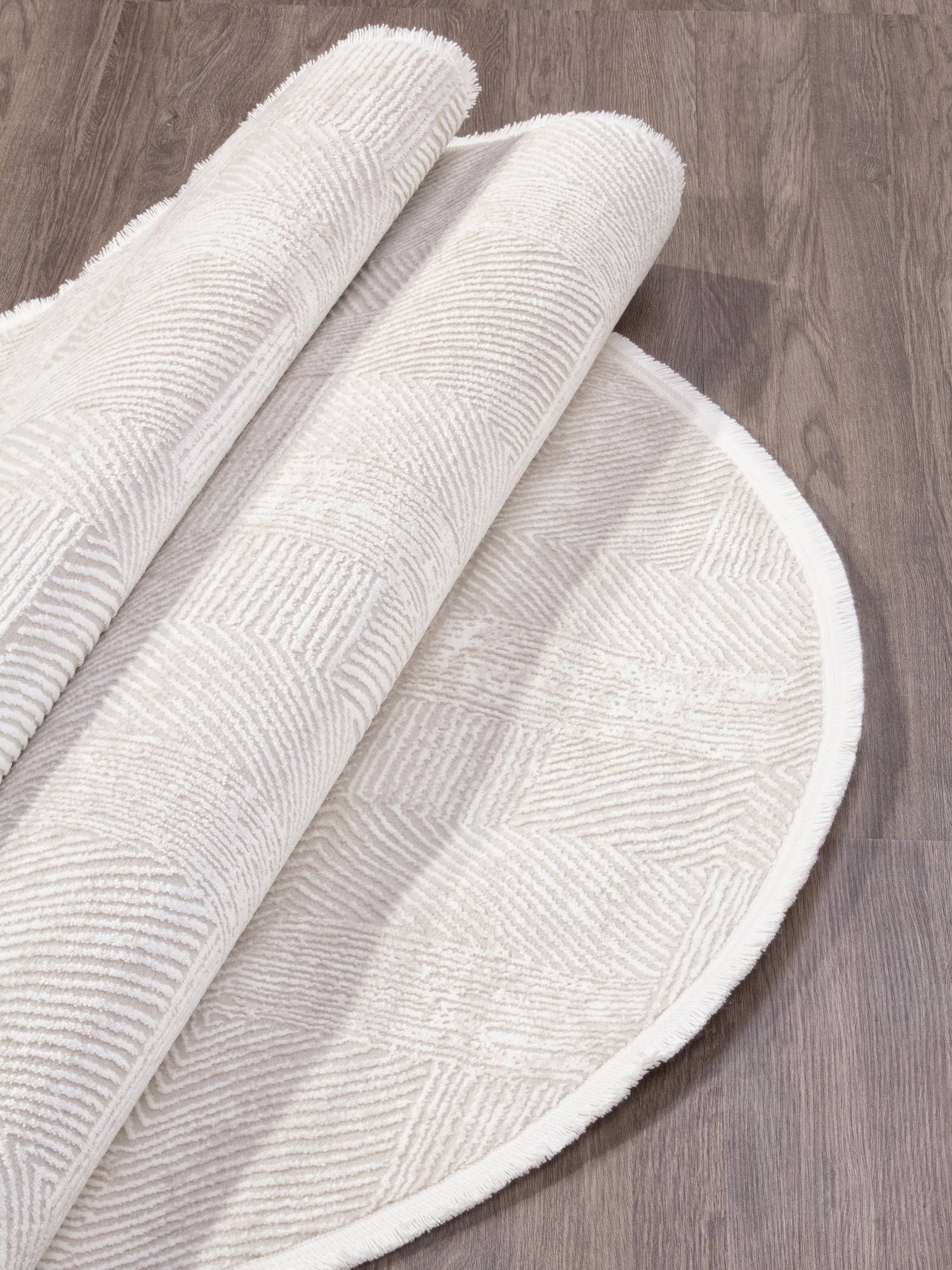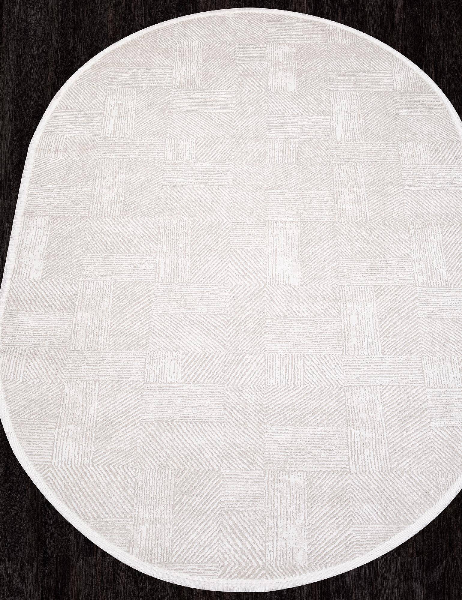 Светлая кремово-серая расцветка, модная овальная форма и геометрический орнамент позволяют этому ков...