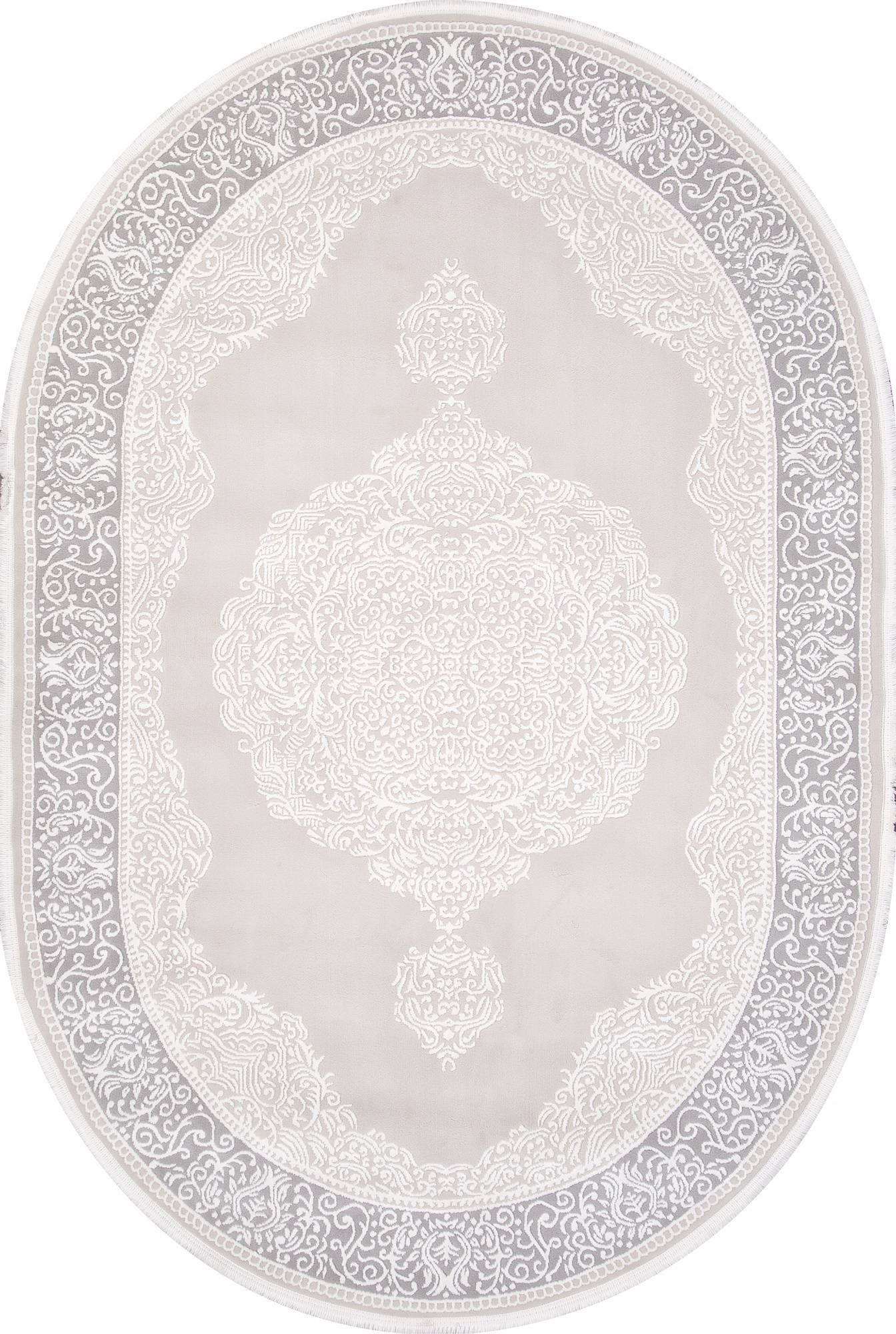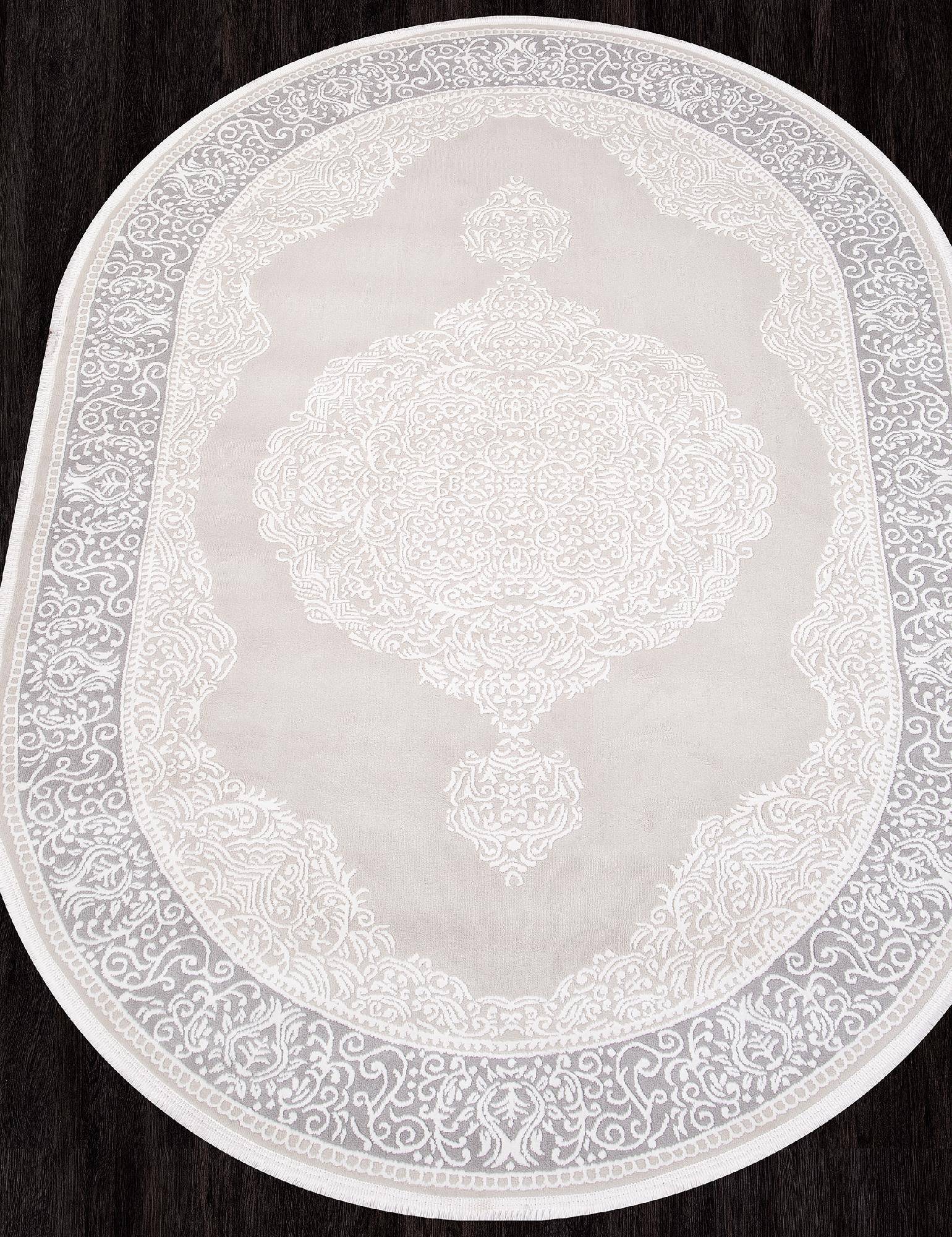 Элегантный ковер в классическом стиле. Серо-бежевая расцветка и модная овальная форма прекрасно дополняют друг-друга что позволяет этому ковру стать интересным украшением для любого интерьера.