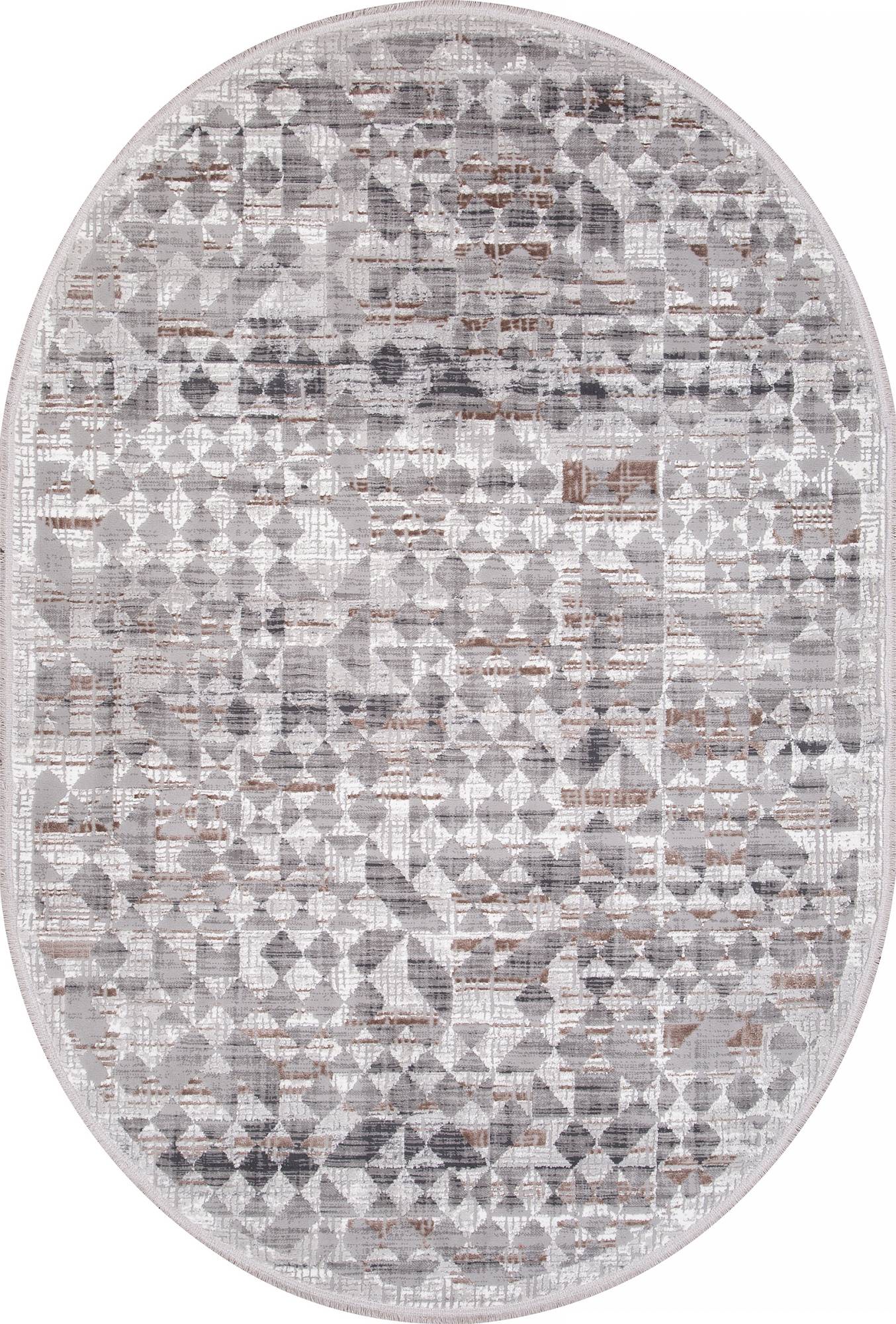Стильный, модный ковер с геометрическим орнаментом и нейтральной расцветкой. Такой овальный ковер станет будет оригинальным украшением для интерьера вашего дома.