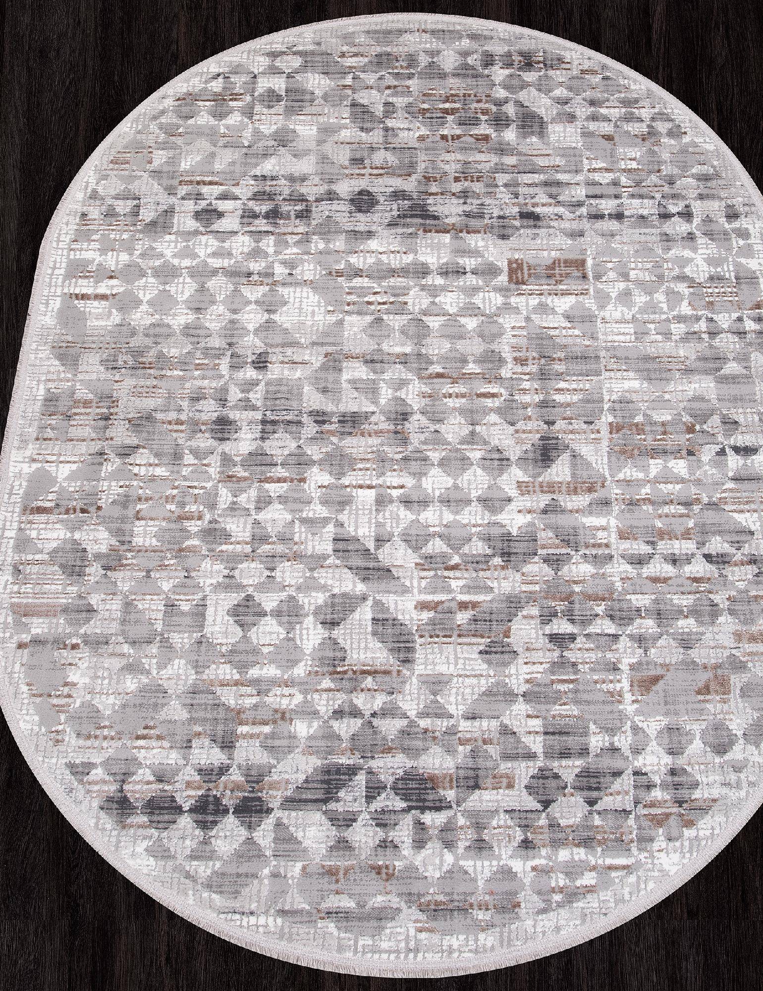 Стильный, модный ковер с геометрическим орнаментом и нейтральной расцветкой. Такой овальный ковер ст...