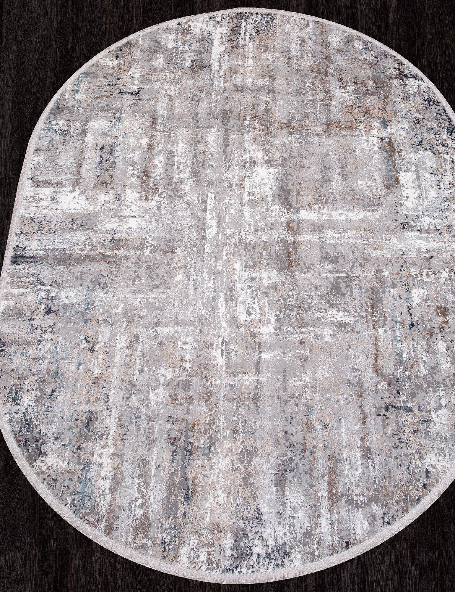 Абстрактный рисунок в серой и синей расцветке и модная овальная форма позволяют этому ковру стать от...