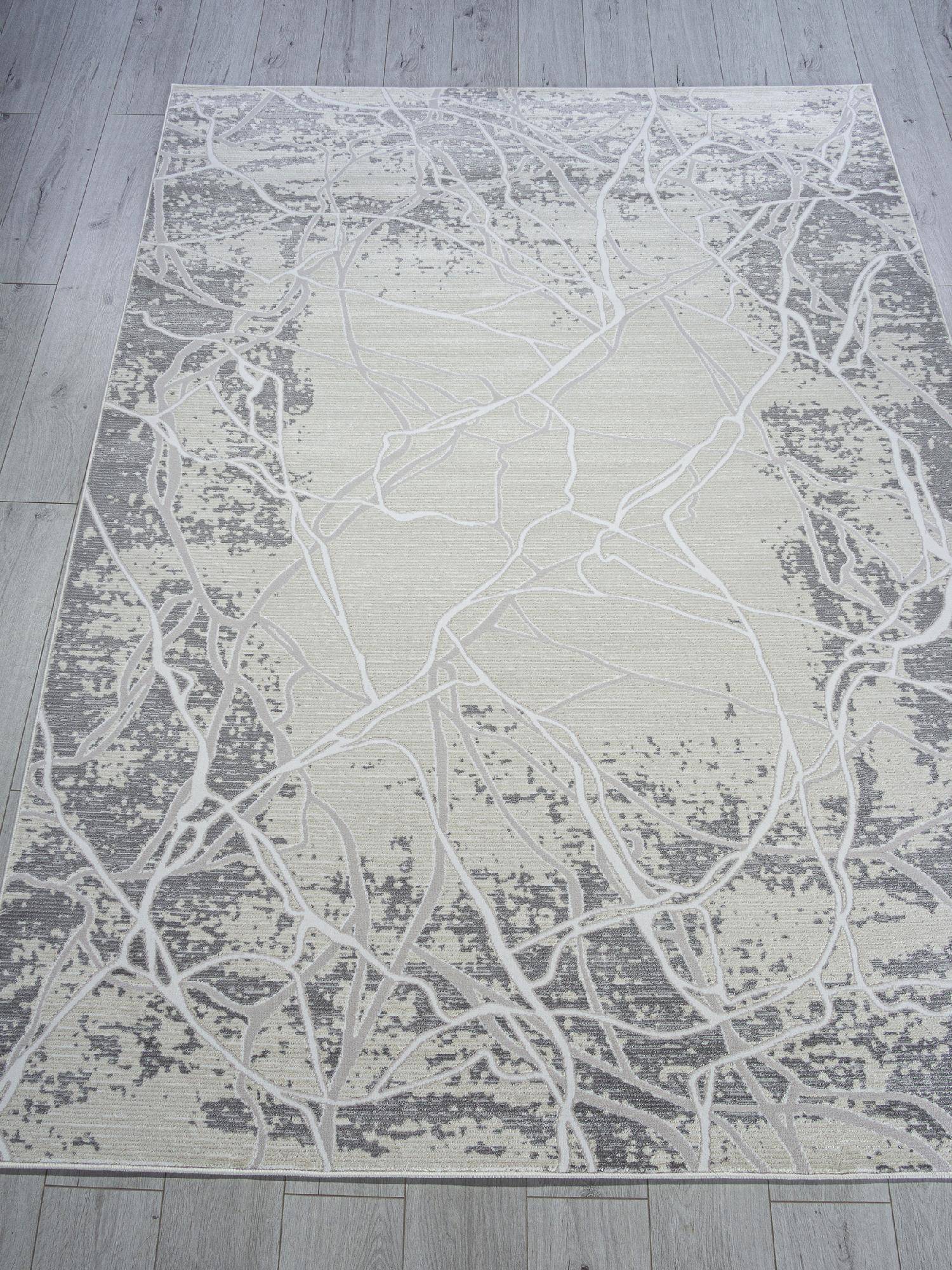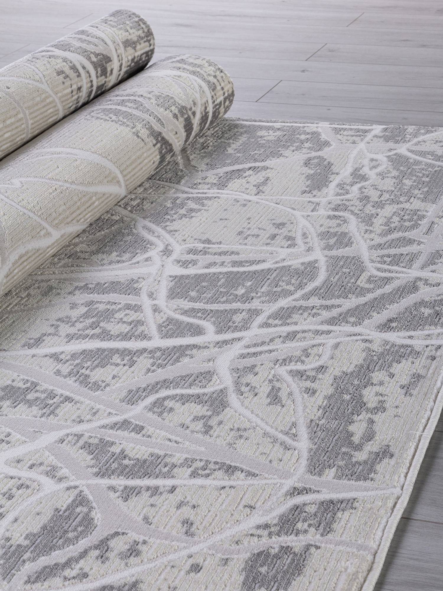 Нейтральная серо-кремовая расцветка и интересный орнамент позволяют этому ковру стать стильным дополнением для интерьера вашего дома.